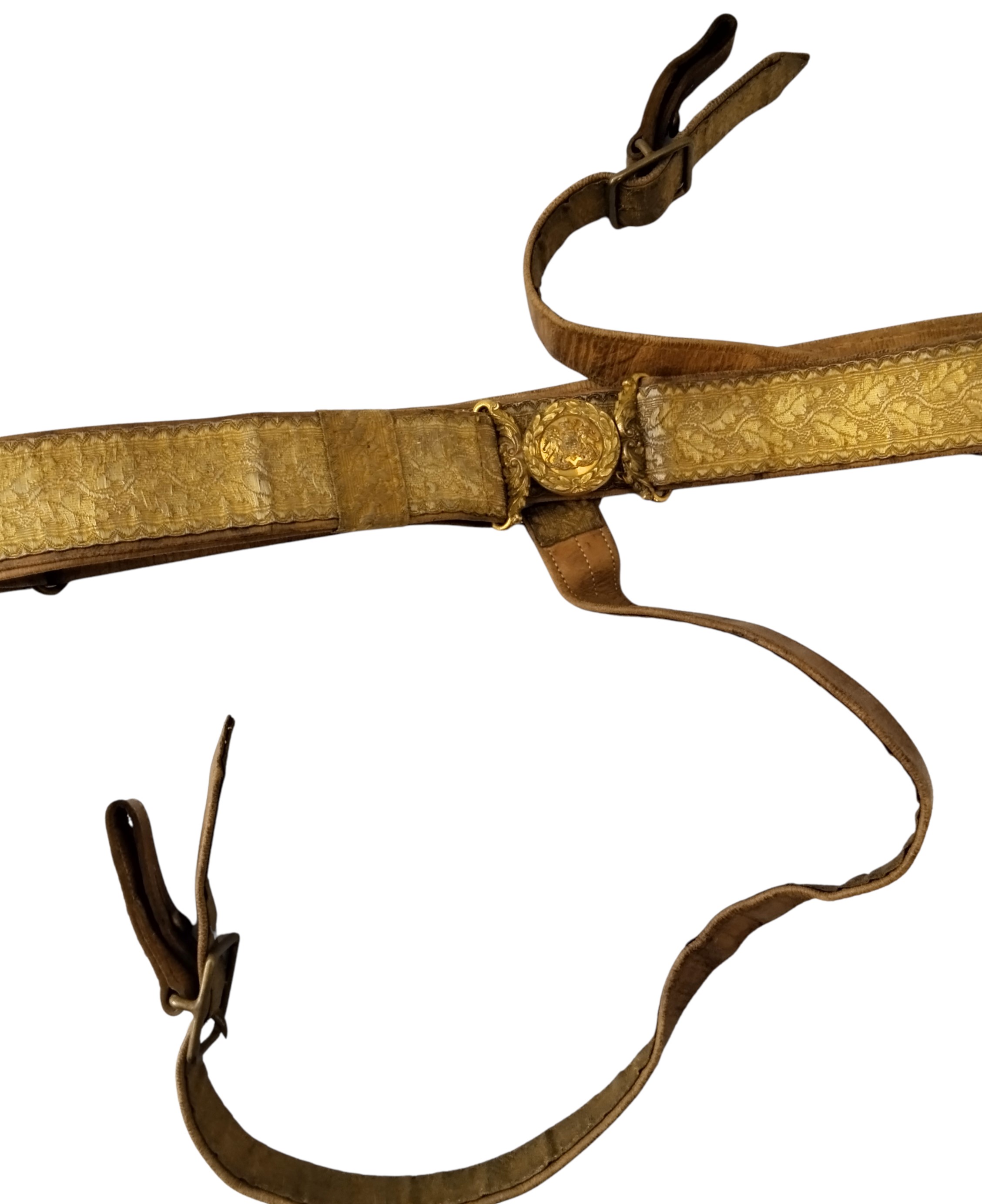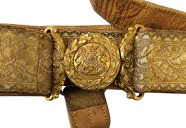 A beautiful gold brocade belt for a high official of the British Empire, complete with sabre pendants; in excellent condition.