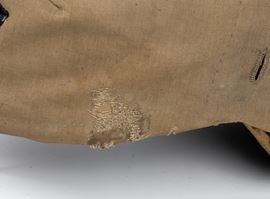 Dragoon helmet in average condition with nice grey-green cotton canvas cover, in good condition.