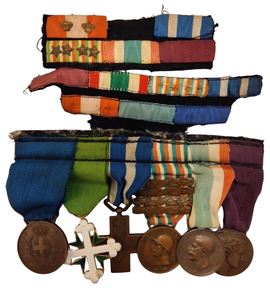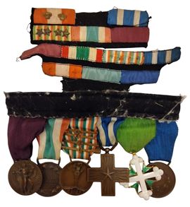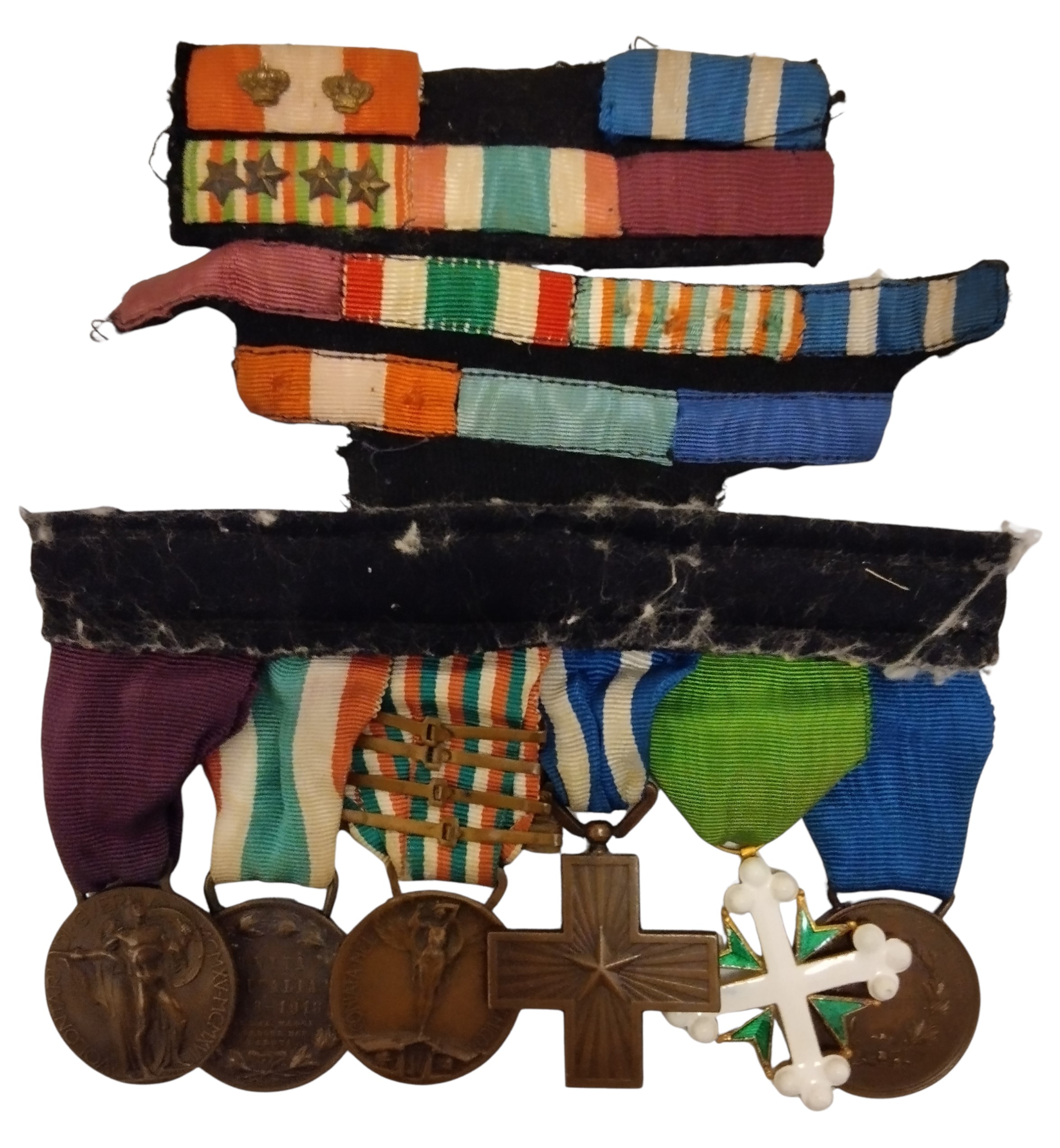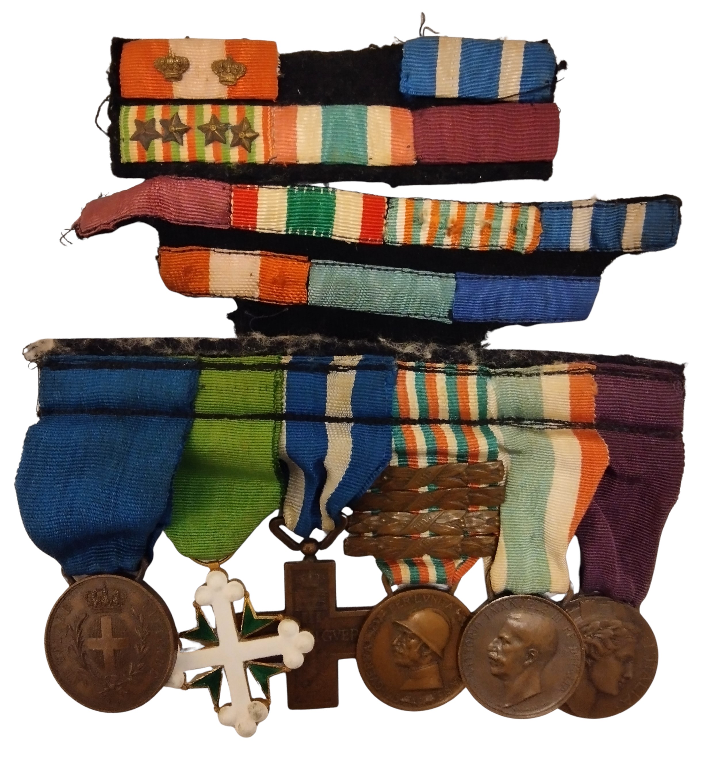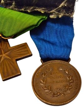 Medal collection consisting of six medals: one 15-18 Volunteer, two commemorative medals from the Great War, a Knight's Cross of the Order of Saints Maurice and Lazarus with intact enamels and a Bronze VM mint awarded in Hoie - Bainsizza to Carlo Alberto Cempini Meazzuoli, a well-known political figure of the twenty-year period in the province of Livorno. In excellent condition.