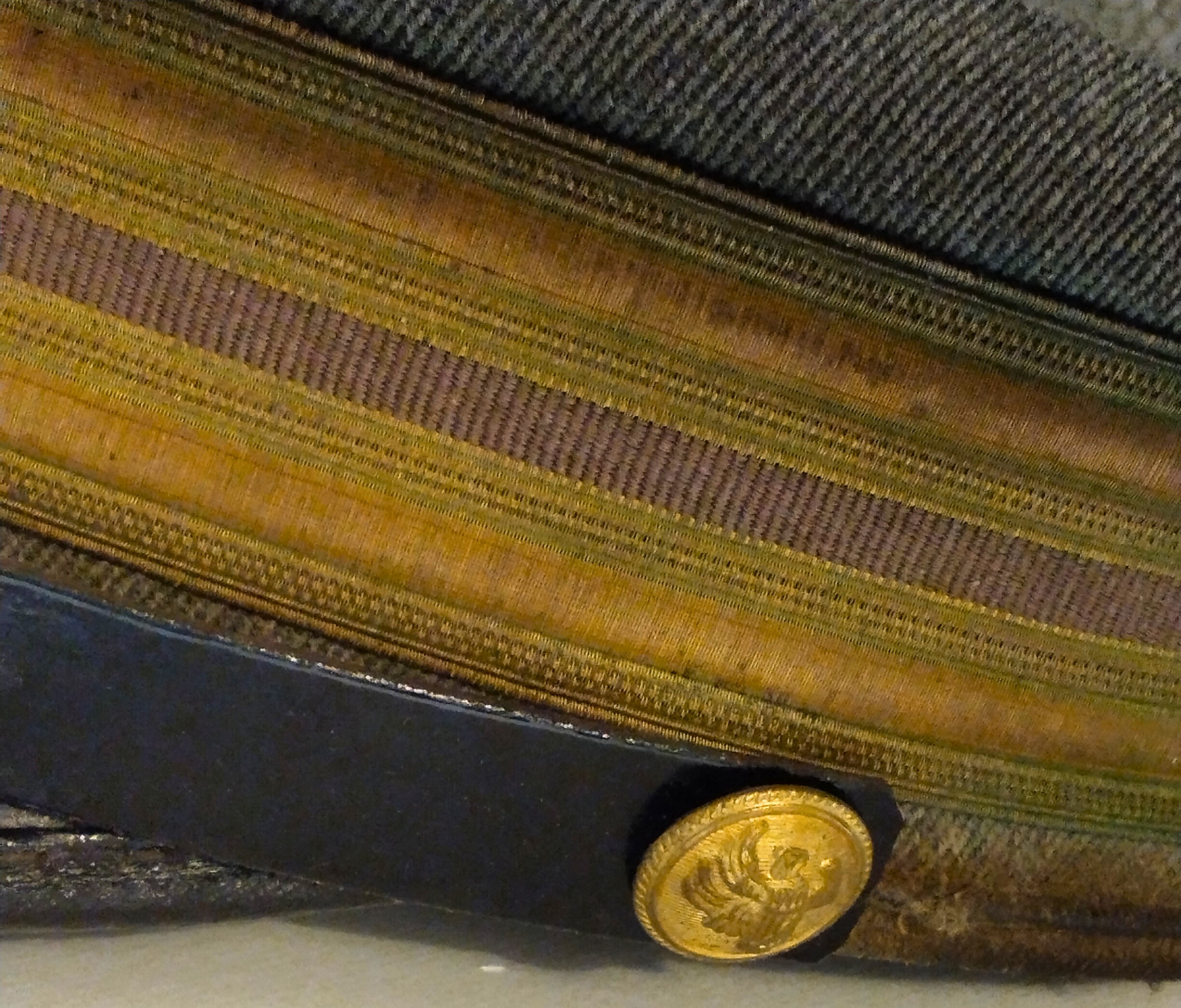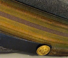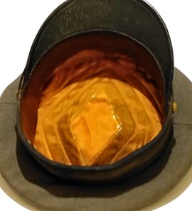 Street Militia officer's cap, wool cord with a particular flat shape, beautiful embroidered badge in bullion on blue cloth, buttons on the chin with specialty badge, in excellent condition, rare.