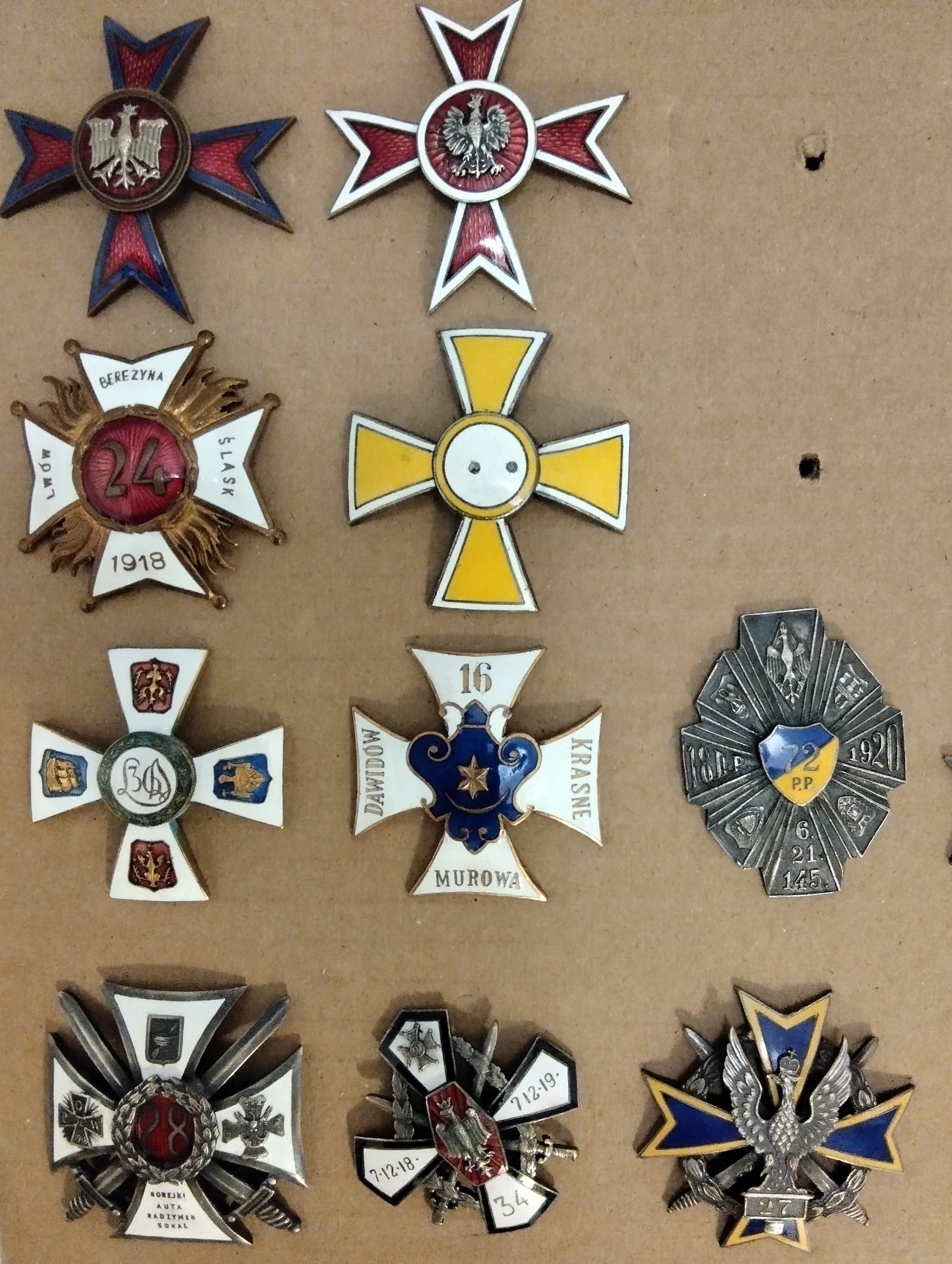 Lot of ten regimental badges, mainly produced by the Panasiuk firm of Warsaw, gilded metal and polychrome enamels, on the reverse central screw and washer with manufacturer's marks, in excellent condition.