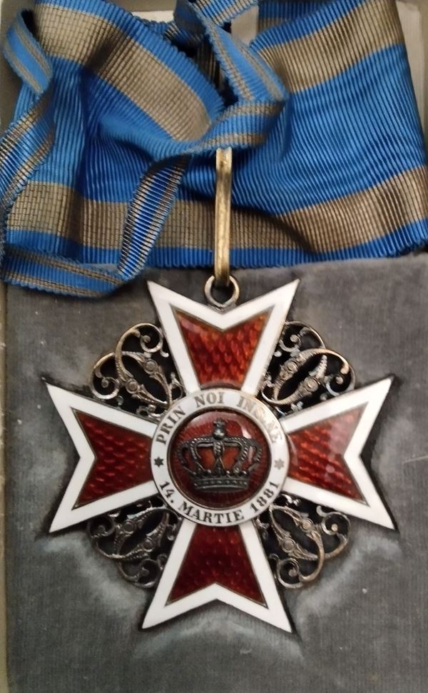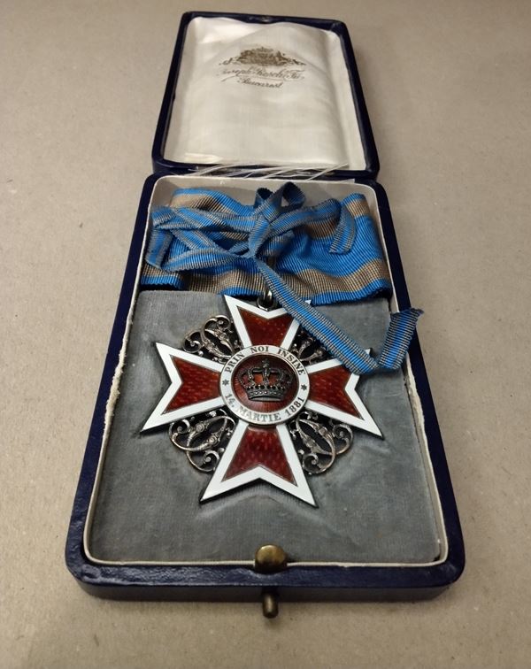 Commander of the Order of the Crown insignia, in silver and polychrome enamels, in a case with the maker's mark, Joseph Reschle Fii, Bucharest, in excellent condition, excellent workmanship.
