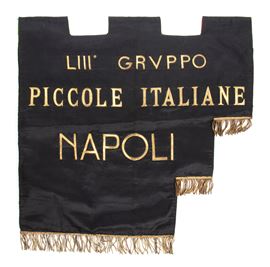 Beautiful banner of the Little Italians of Naples, black silk with embroidery of bullion, tricolour on the reverse, in excellent condition