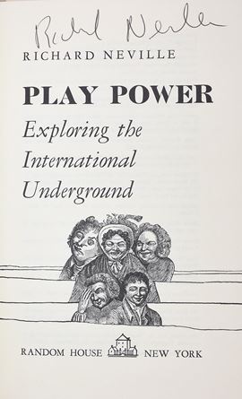 Neville, Richard: Play Power, Random House, 1970. Copertina rigida. Firma autografa originale dell'autore. Prima edizione americana.
