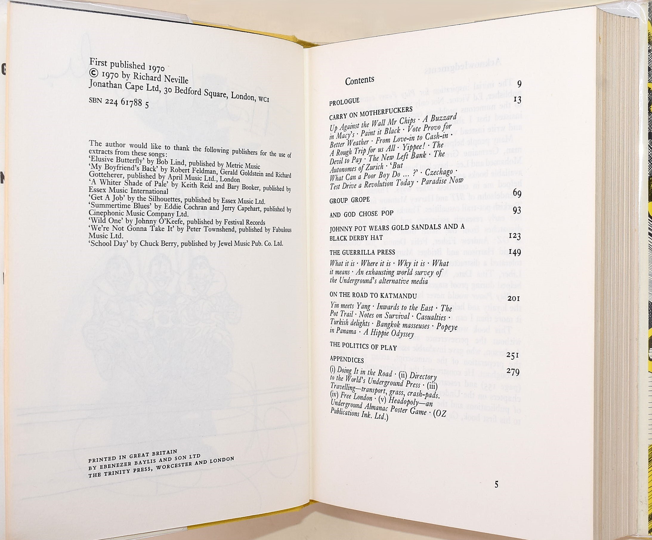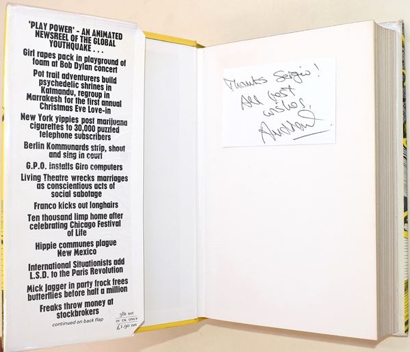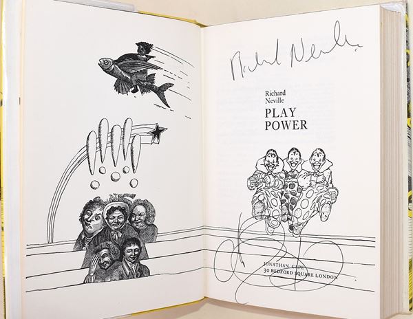 Neville, Richard: Play Power, Jonathan Cape, 1970. Copertina rigida. Firma autografa originale dell'autore. Biglietto del venditore firmato. Inserto tipografico al fine. Prima edizione inglese.