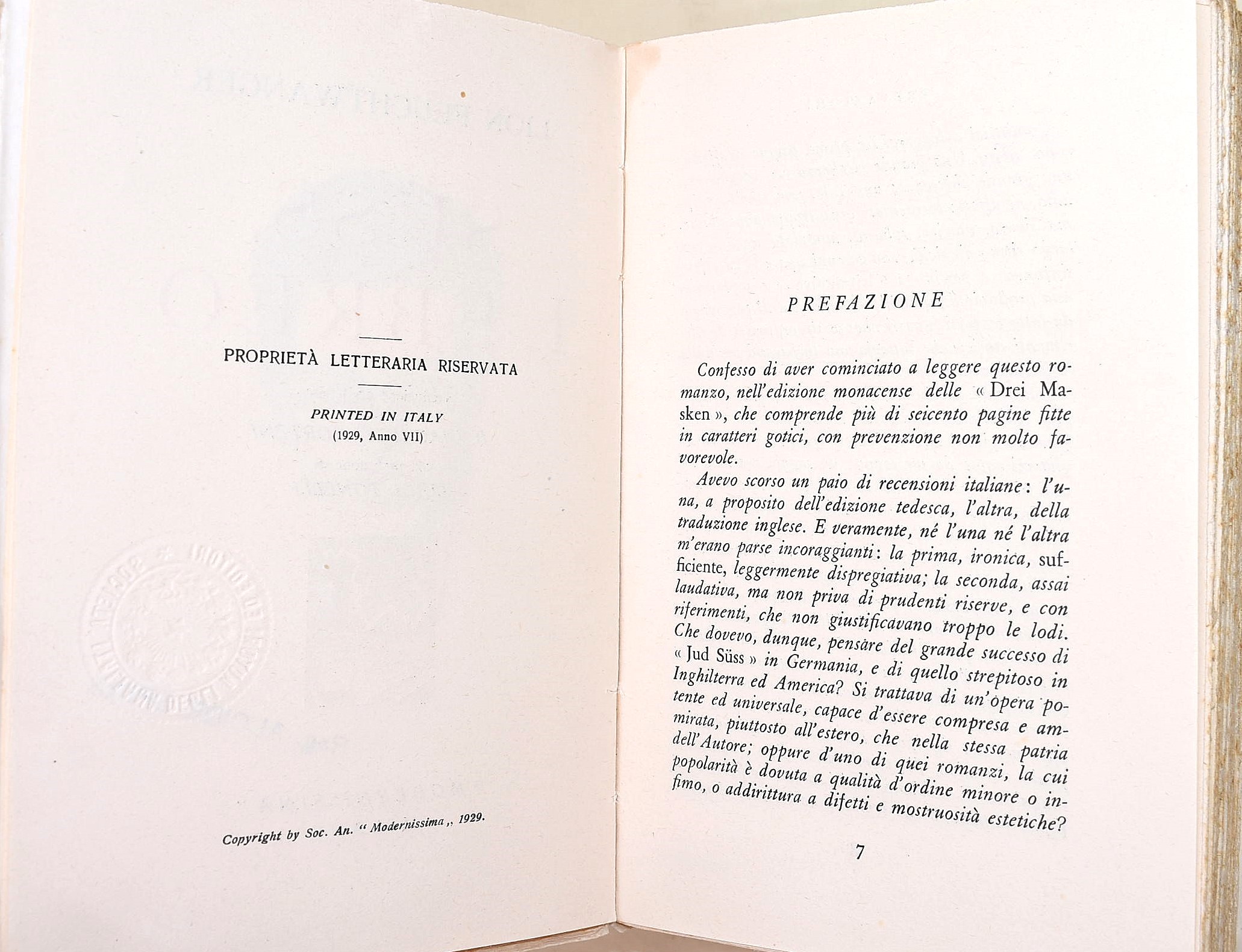 Feuchtwanger, Lion: Süss, L'Ebreo, Modernissima, 1929-VII. Brossura.