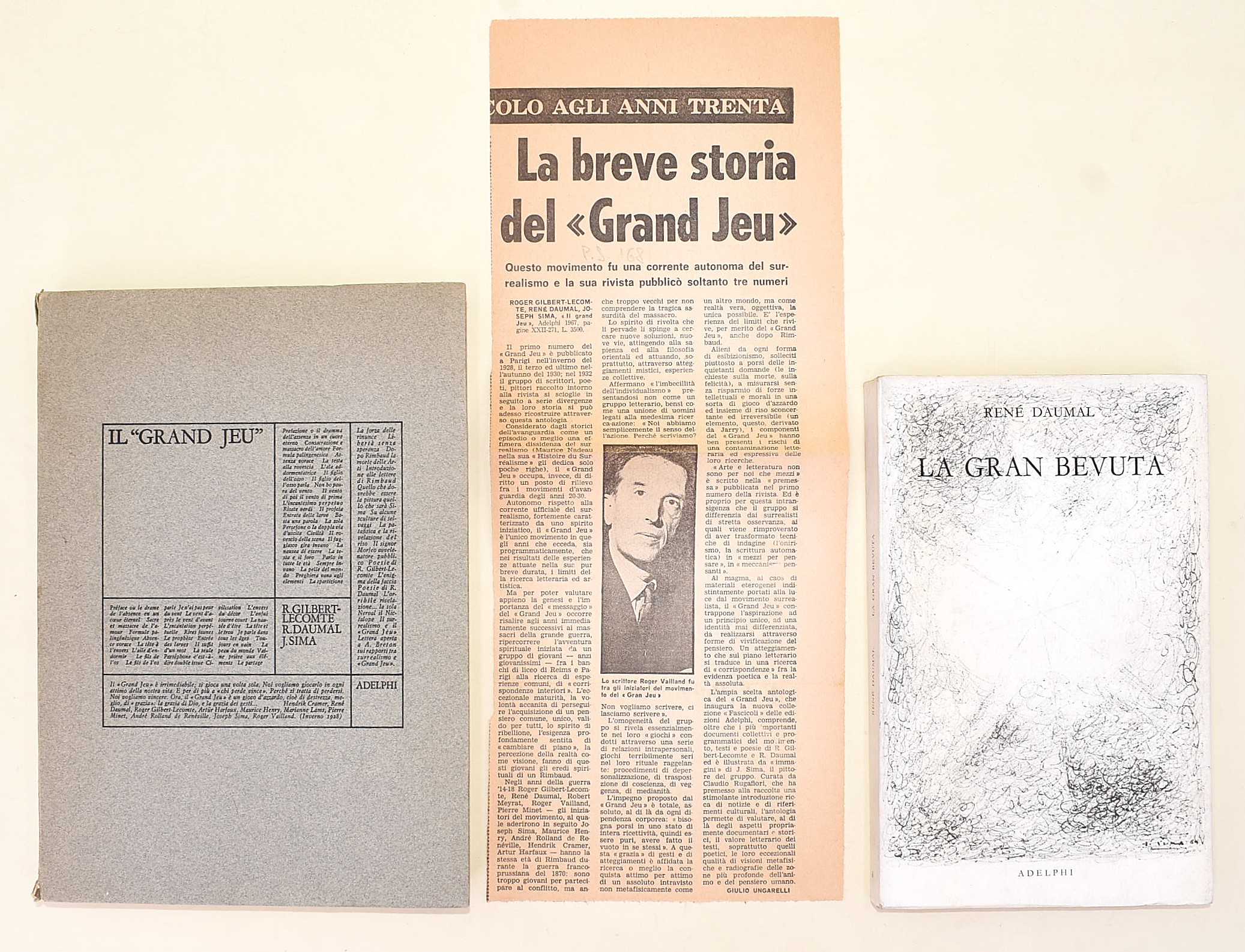 Il "Grand Jeu". Scritti di Roger Gilbert-LeComte e René Daumal. Immagini di Joseph Sima, Adelphi, 1967. Brossura. Edizione illustrata.