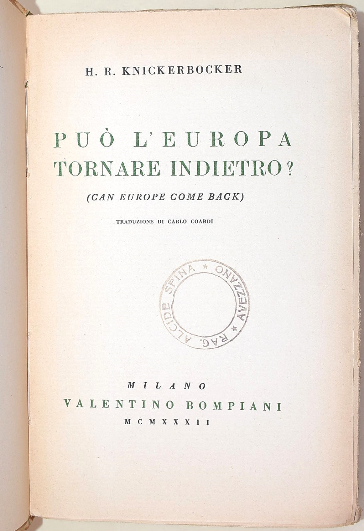 Knickerbocker, Può L'Europa Tornare Indietro? Bompiani, 1932. Brossura.