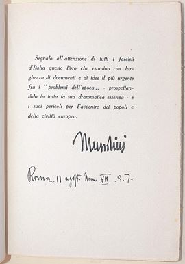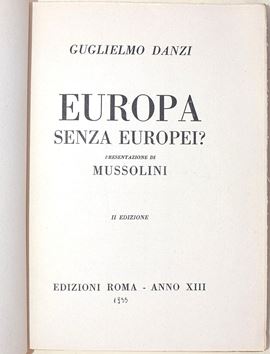 Danzi, Guglielmo: Europa senza Europei? Presentazione di Mussolini, Edizioni Roma, 1933.