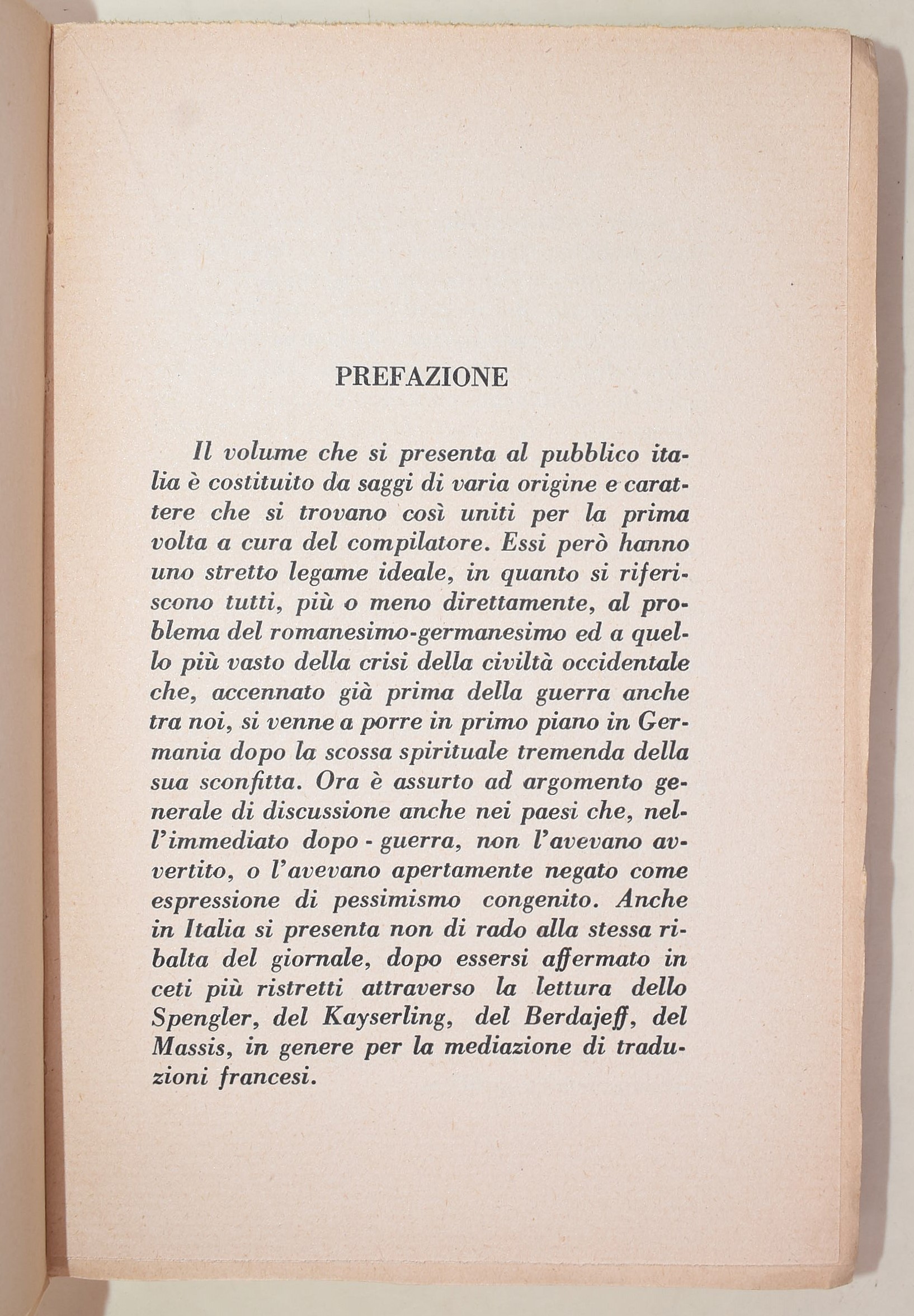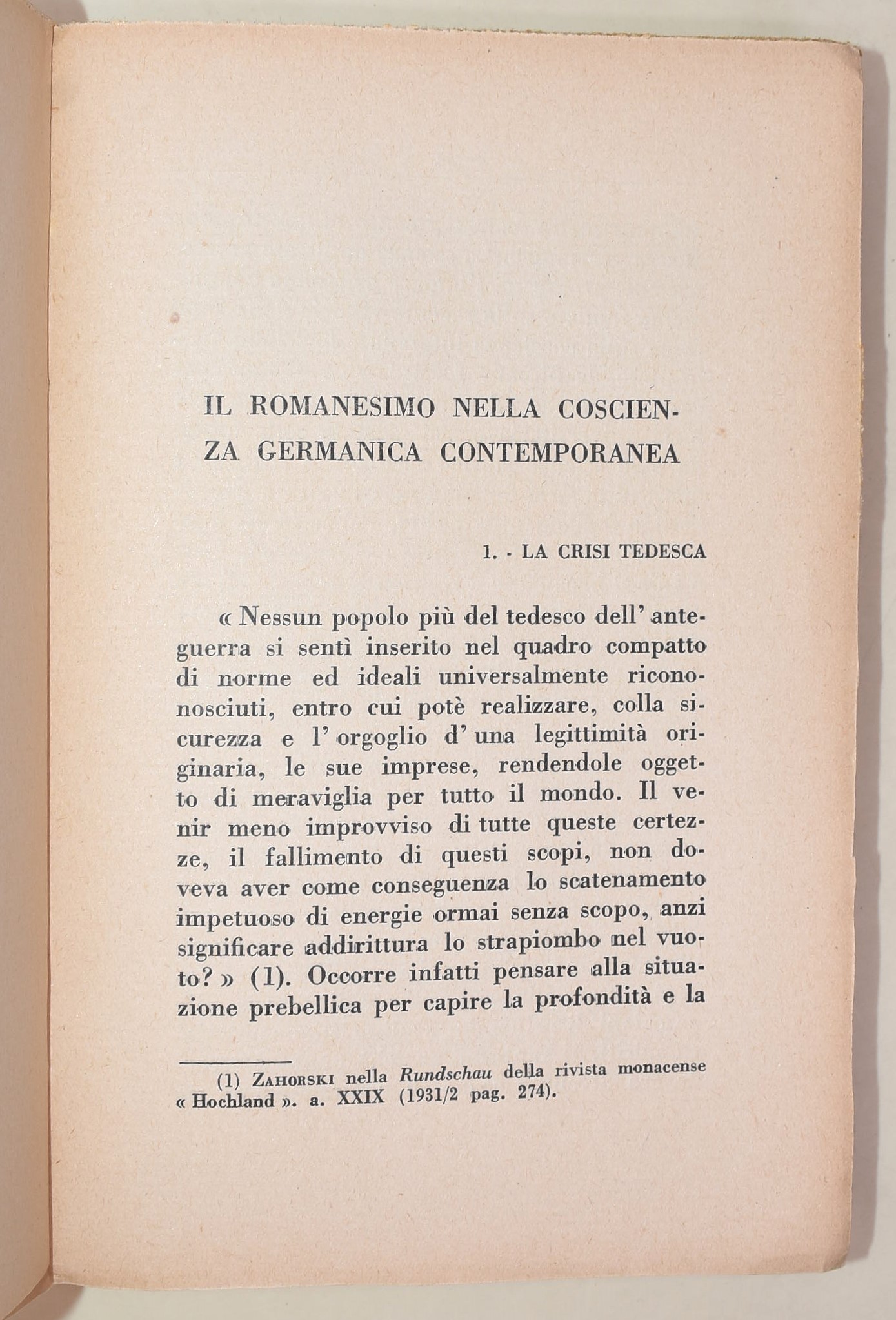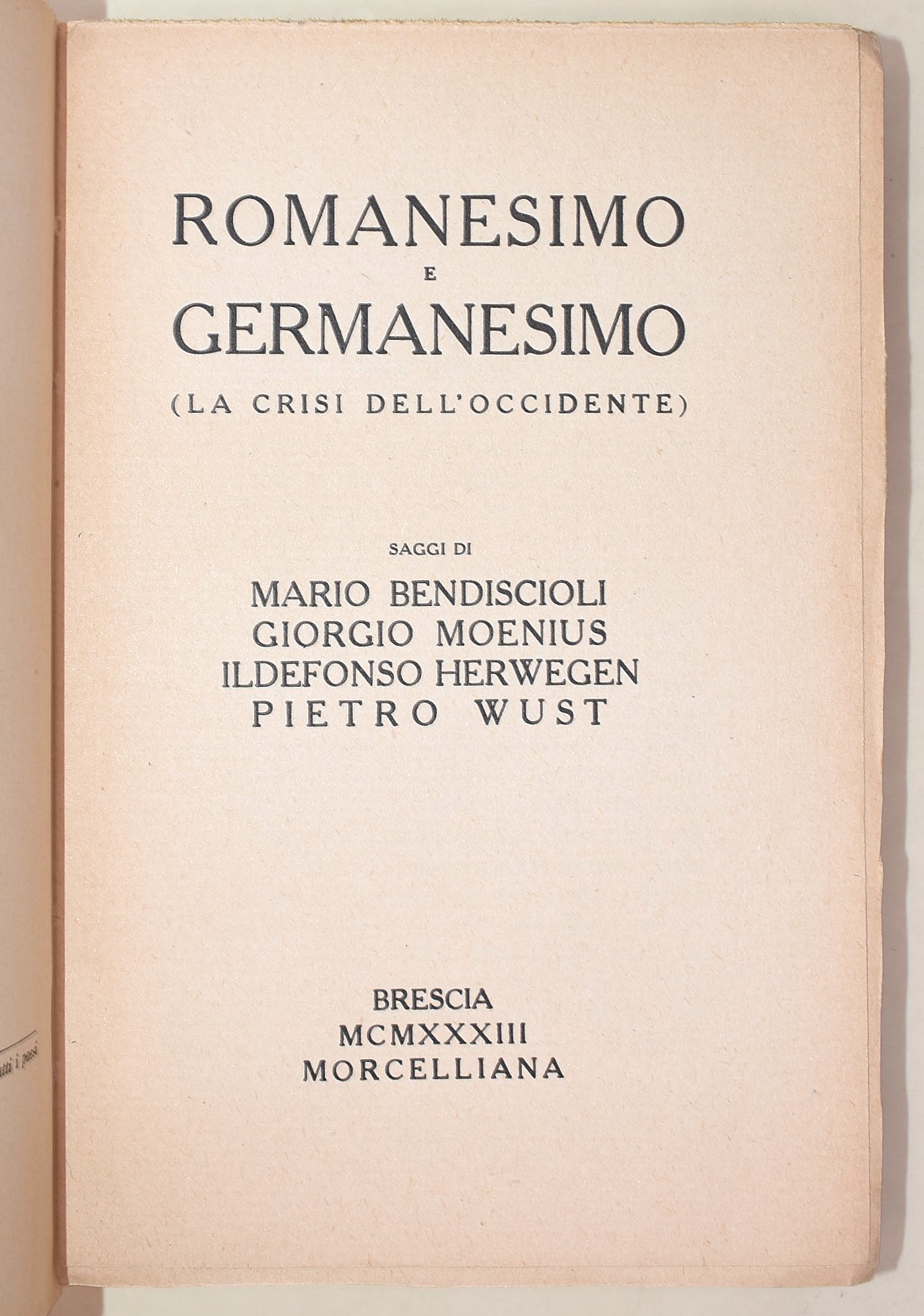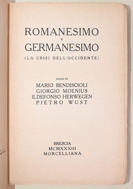 Bendiscioli, Mario - Moenius, Giorgio - Herwegen, Ildefonso - Wust, Pietro: Romanismo e Germanesimo, Morcelliana, 1933. Brossura.