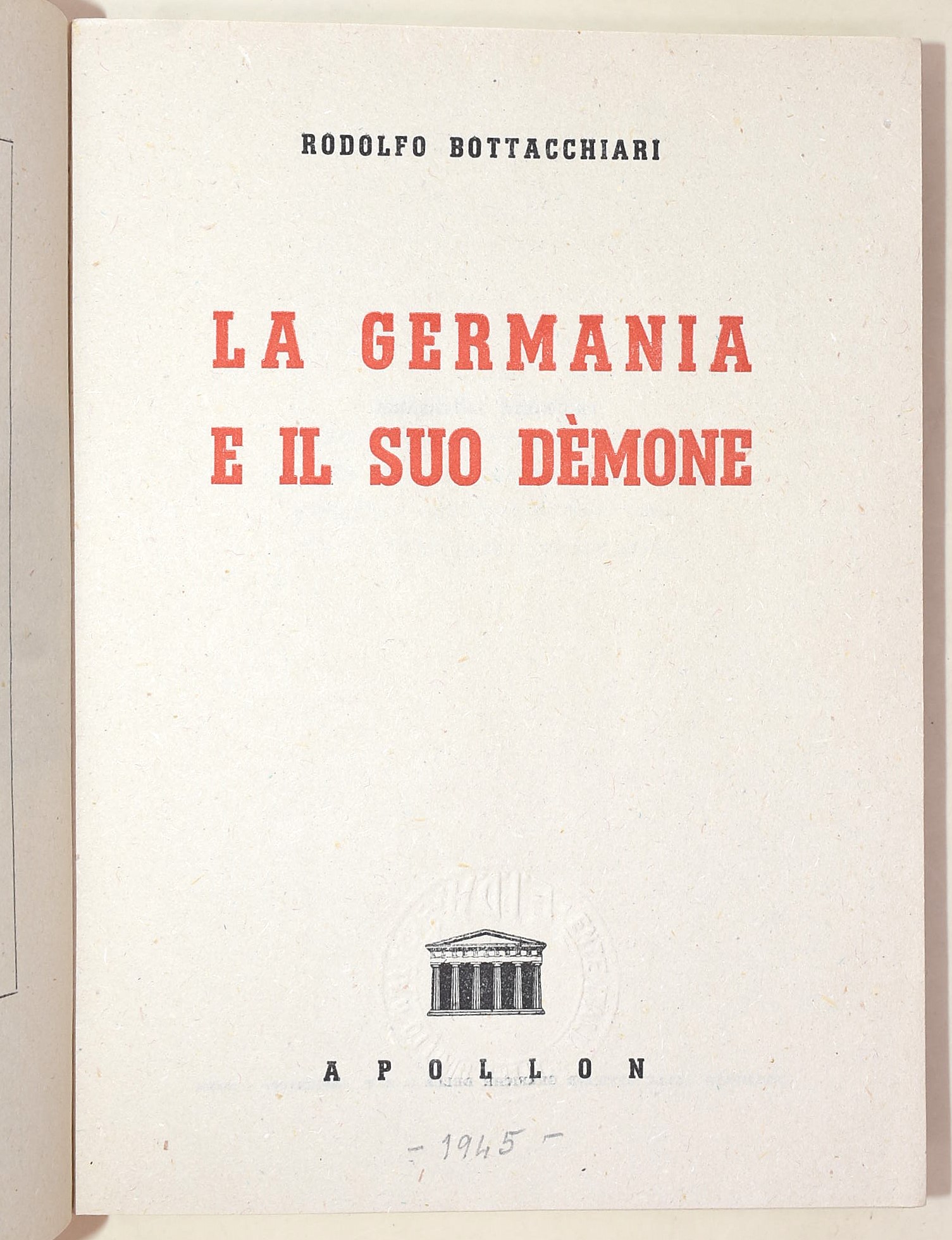 Bottacchiari, Rodolfo: La Germania e il suo demone, Apollon, 1945. Brossura.