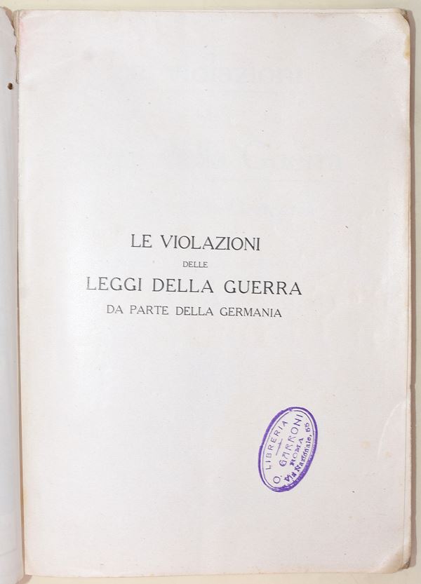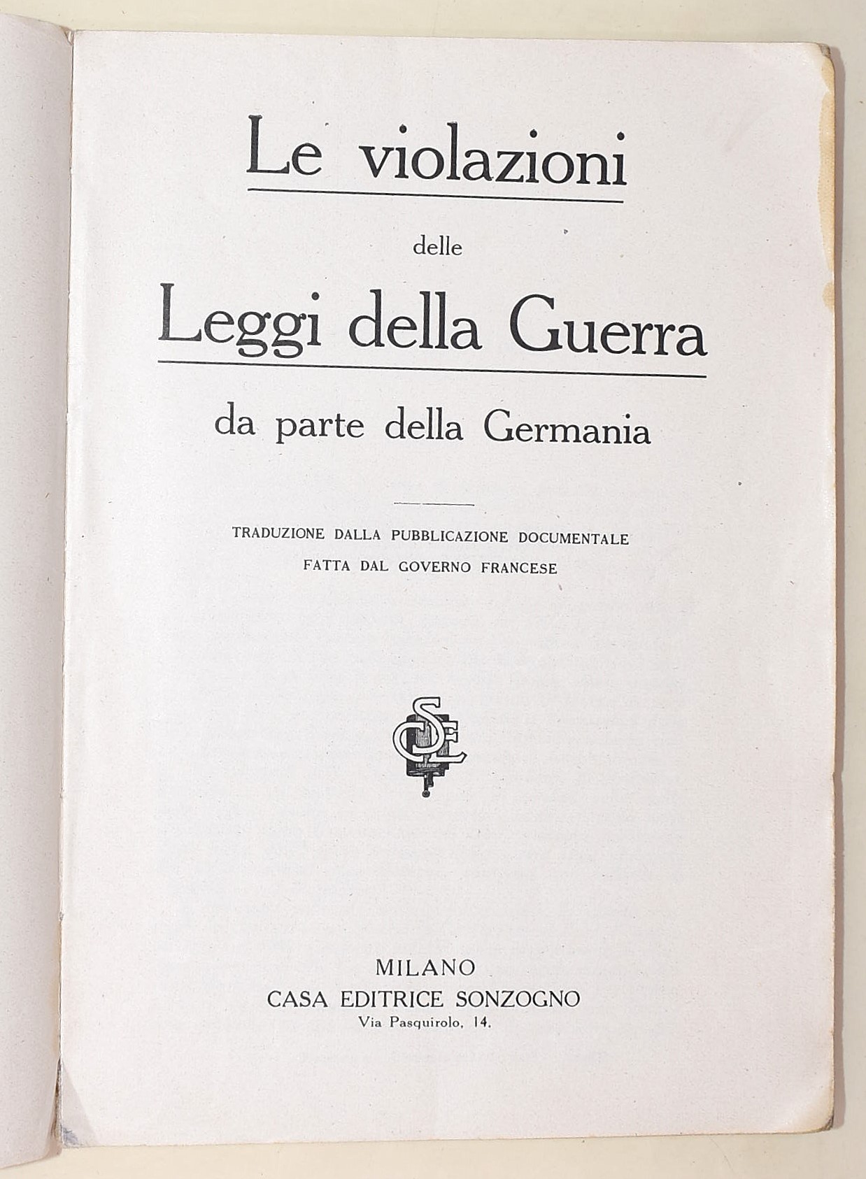 Le violazioni delle leggi della guerra da parte della Germania, Casa Editrice Sonzogno, s.d. Brossura.