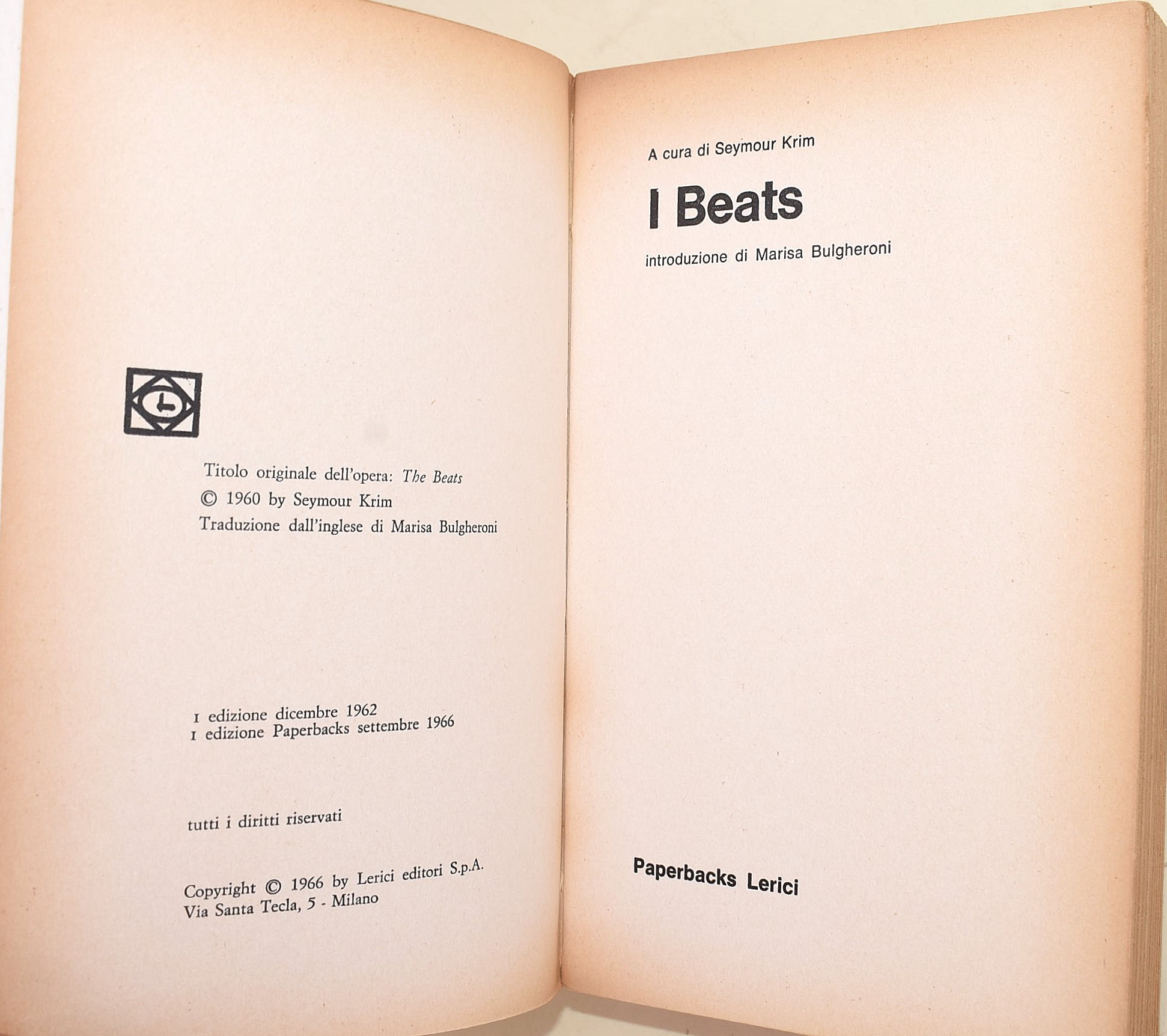 I Beats, a cura di Seymour Kim, Paperbacks Lerici, 1966. Brossura. Prima edizione Paperbacks.