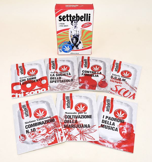 Settebelli. I primi I più amati, Stampa Alternativa, 1994-1995. Cofanetto che contiene 6 opuscoli: Debord, Guy E.: La società dello spettacolo; Cooper, David: Chi sono i dissidenti; I Padroni della Musica; Manuale per la Coltivazione della Marijuana; Tamburrini, Stefano: Combinazioni n. 10 (è un fumetto ripieghevole); Solamas, Valerie: S.C.U.M.; Contro la famiglia.