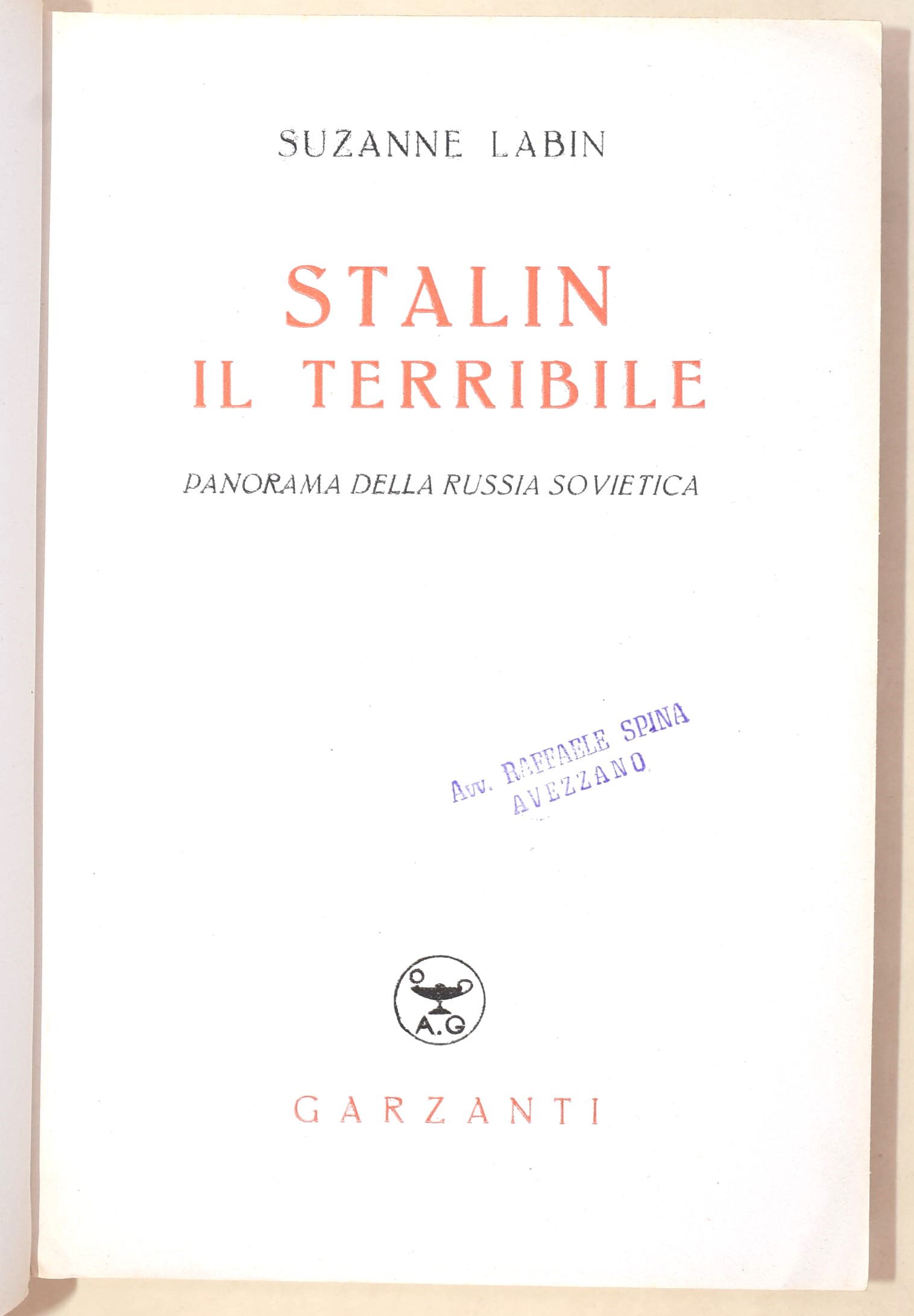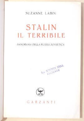 Labin, Suzanne: Stalin Il Terribile, Garzanti, 1950. Brossura. Prima edizione.