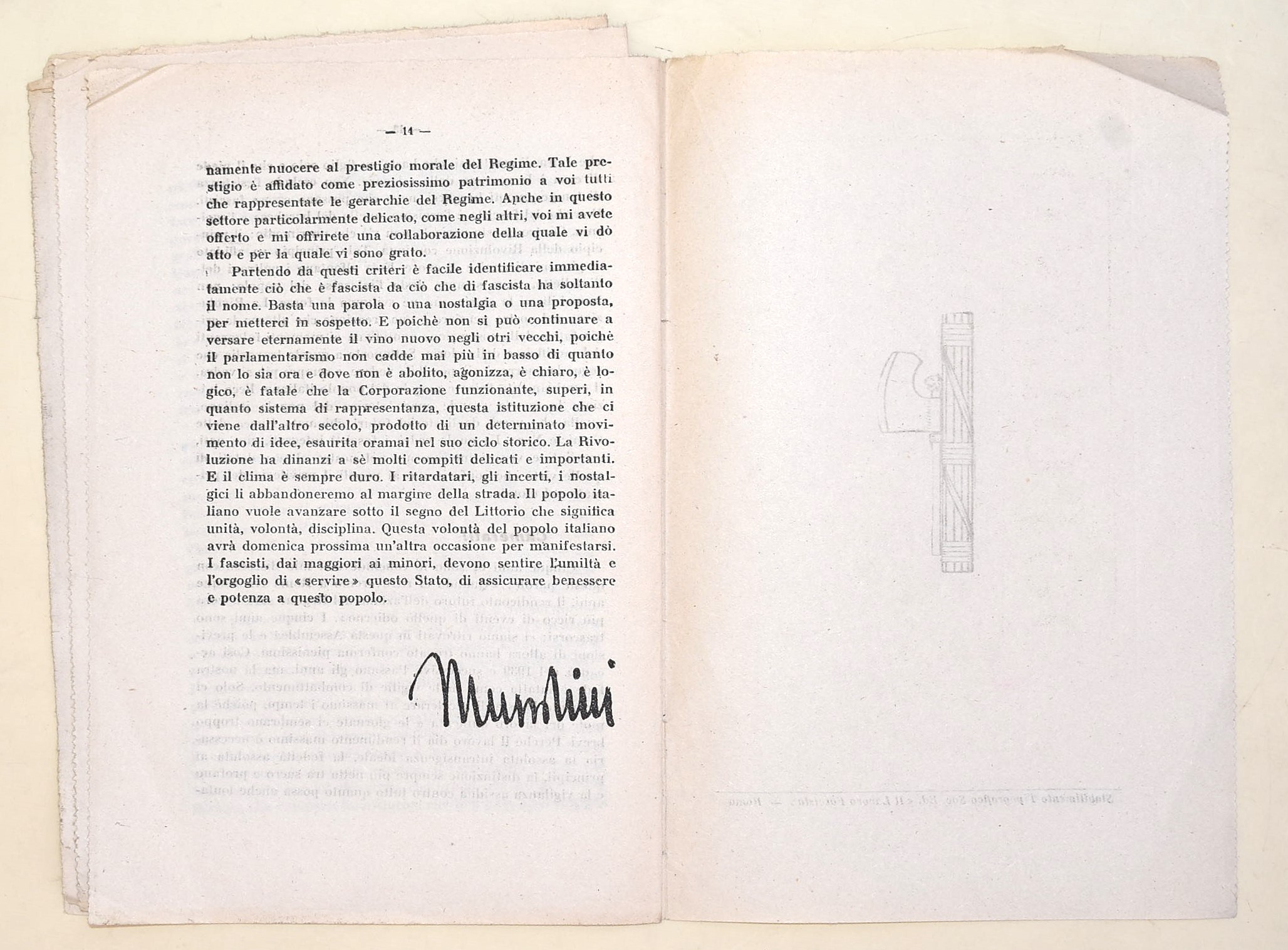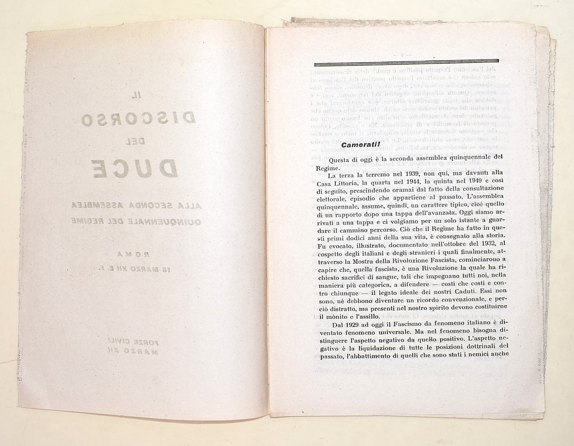 Il Discorso del Duce. Alla seconda assemblea quinquennale del Regime, Roma, 18 marzo XII E.F. Opuscolo.