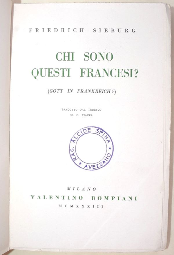 Sieburg, Friedrich: Chi sono questi francesi? Bompiani, 1933. Brossura.