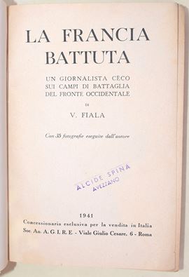 Fiala, V.: La Francia Battuta, Soc. An. A.G.I.R.E., 1941. Brossura.