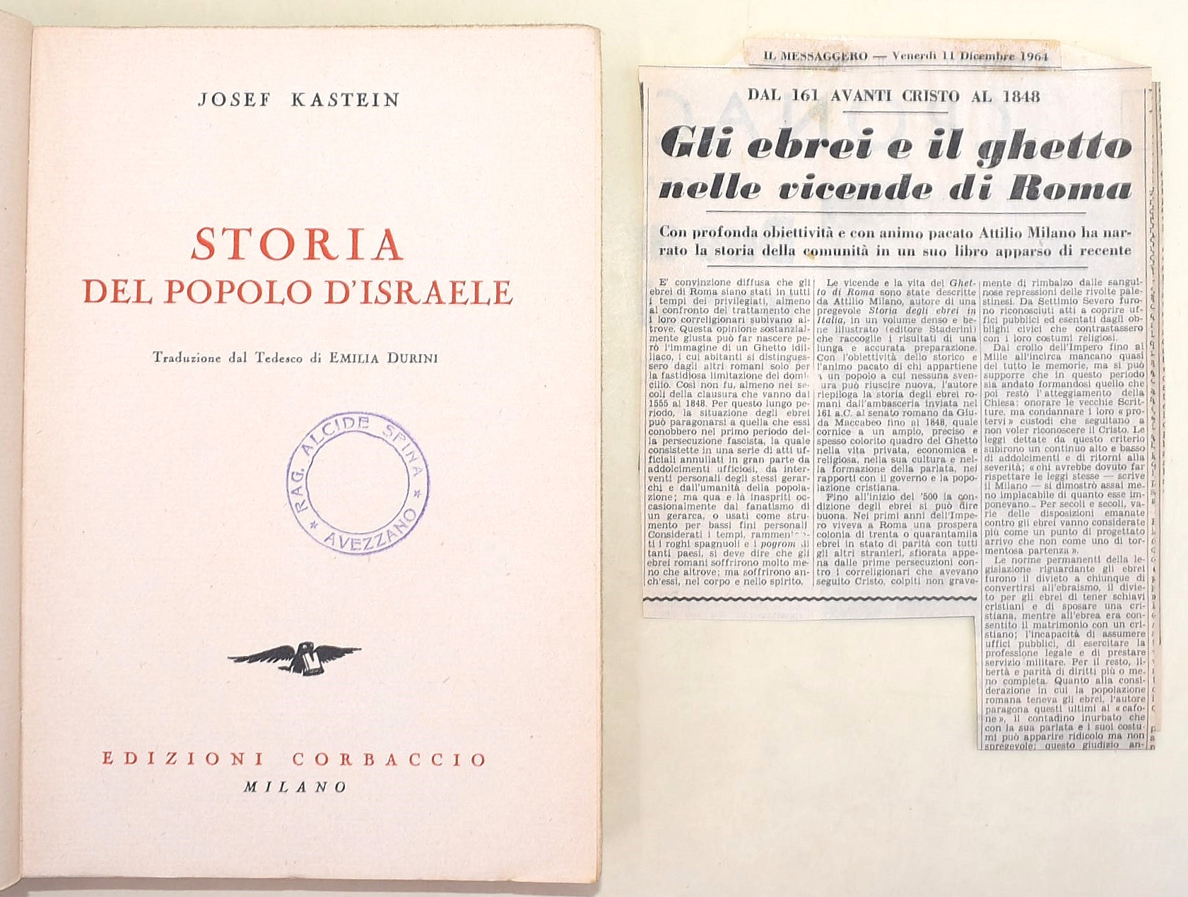 Kastein, Joseph: Storia del popolo d'Israele, Edizioni Corbaccio, 1935-XIII, Brossura.
