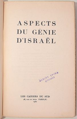 Aspects du Génie d'Israël, Cahiers du Sud, 1950. Brossura.