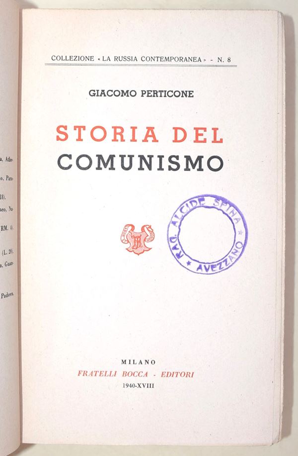 Perticone, G.: Storia del Comunismo, Fratelli Bocca, 1940-XVIII. Brossura.