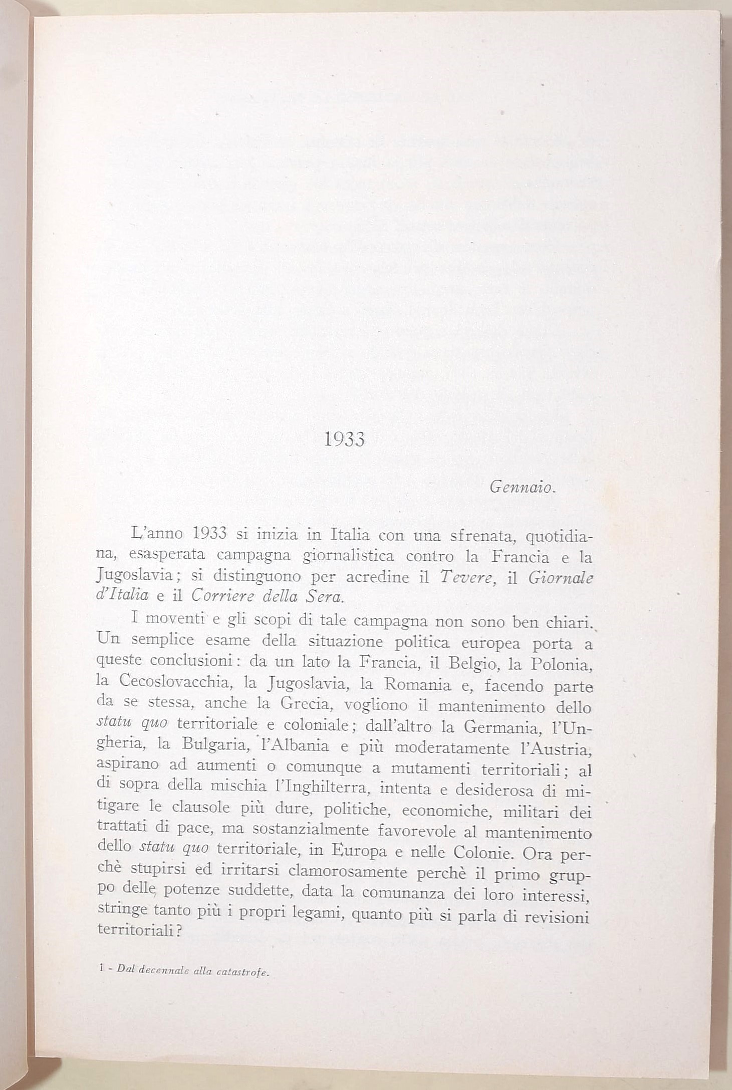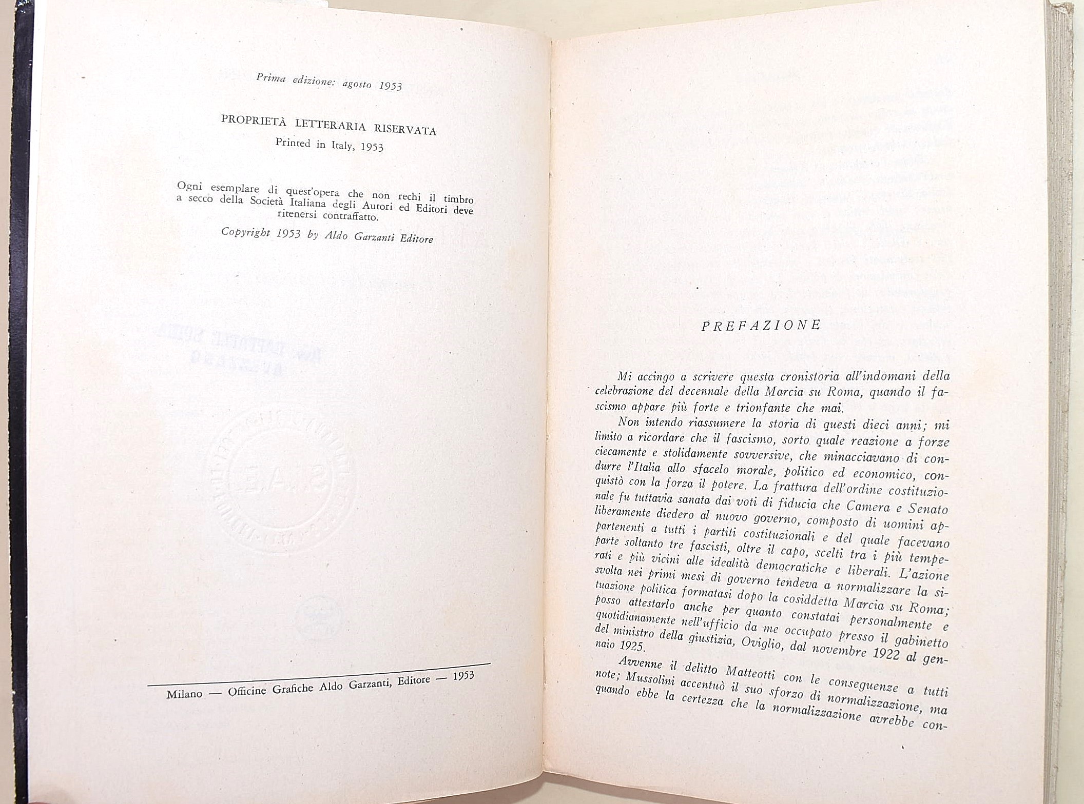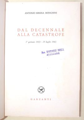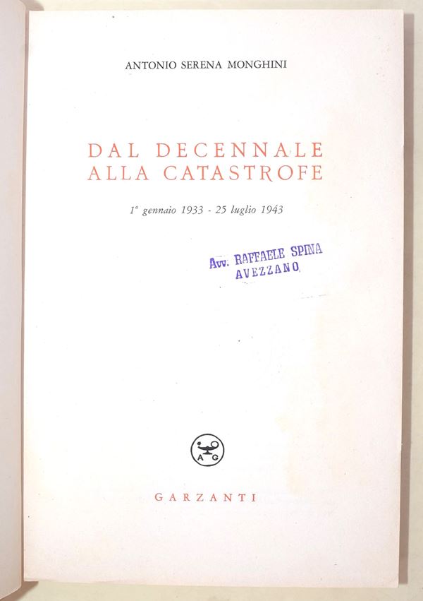 Monghini, Antonio Serena: Dal Decennale alla Catastrofe, Garzanti, 1953. Brossura. Prima edizione.