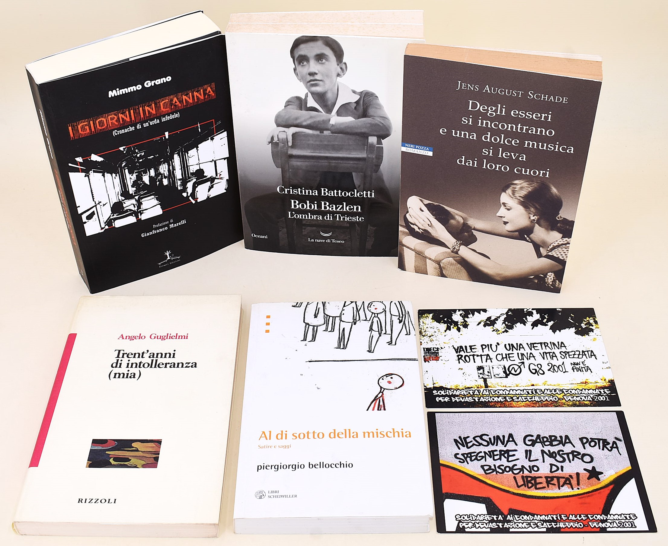 Bellocchio, Piergiorgio: Al di sotto della mischia. Satire e saggi, Libri Scheiwiller, 2007. Brossura con cartoline. Prima edizione.