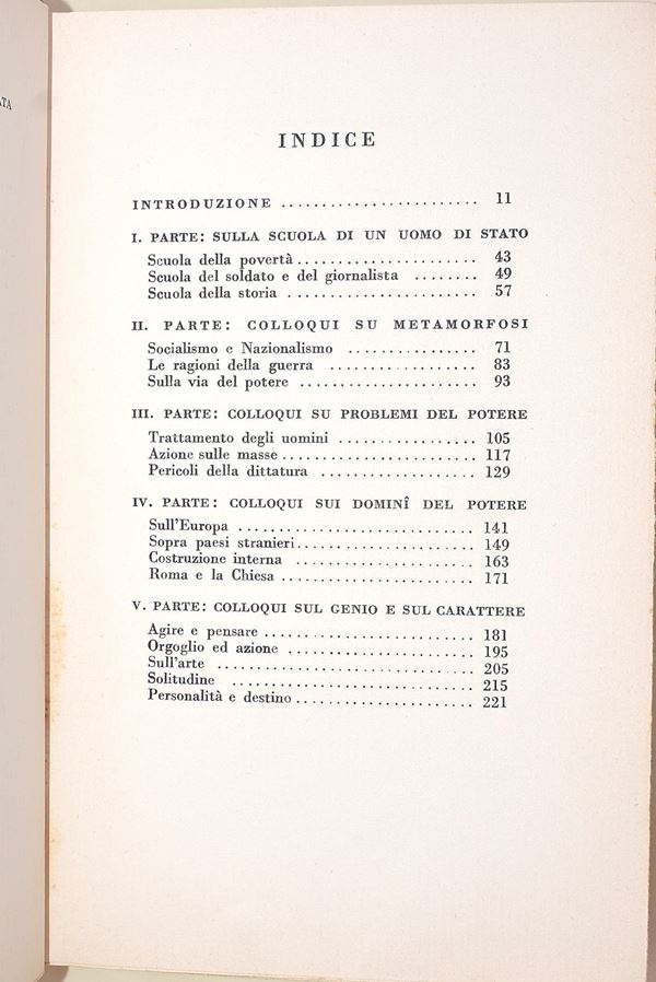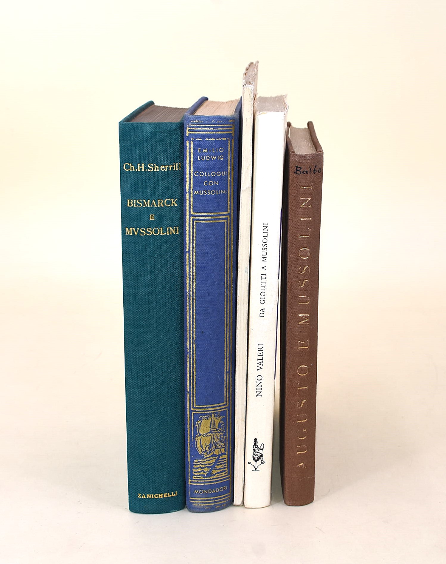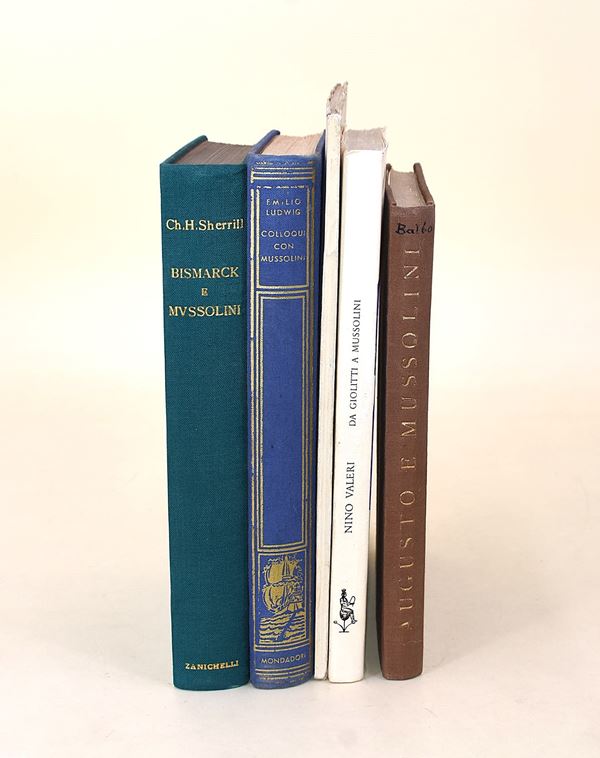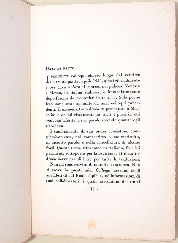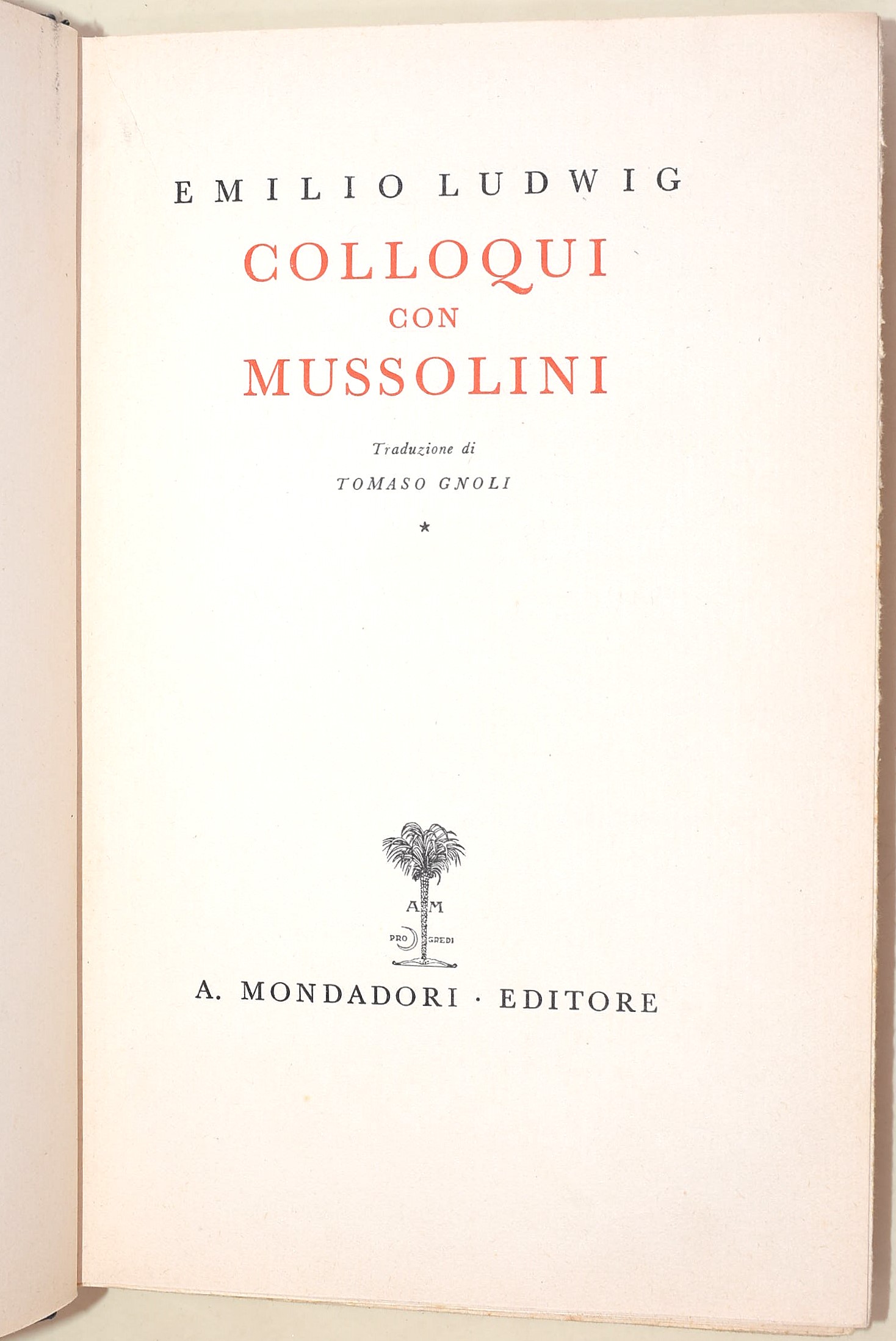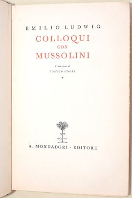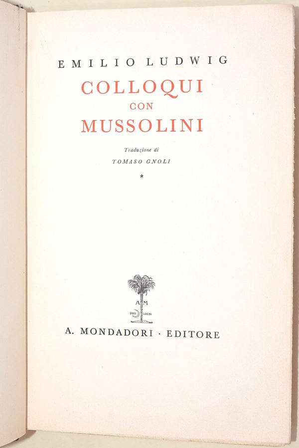 Ludwig, Emilio: Colloqui con Mussolini, Mondadori, 1932. Legatura in piena tela con inserto di giornale. Prima edizione.