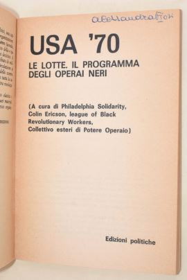 USA '70, Le lotte, Il Programma degli Operai, Edizioni Politiche, 1971. Brossura.