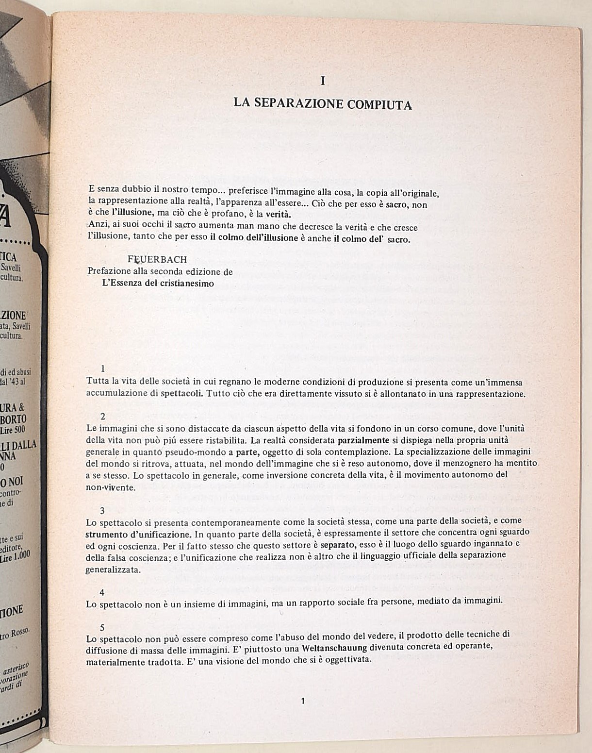 Debord, Guy: La società dello spettacolo, Stampa Alternativa, s.d. Opuscolo.