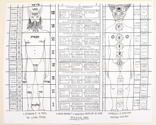 Paradise now, testo collettivo del Living Theatre scritto da Julian Beck e Judith Malina, a cura di Franco Quadri, Einaudi, 1970. Brossura.