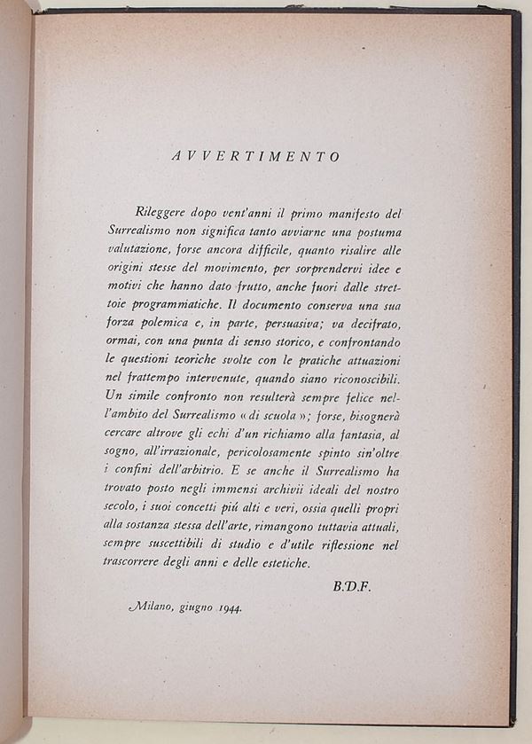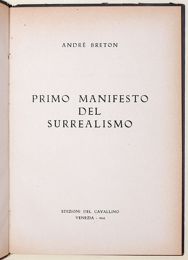 Breton, André: Primo manifesto del Surrealismo, Edizioni del Cavallino, 1945. Copertina rigida. Tiratura limitata: n. 1296 di 2000.