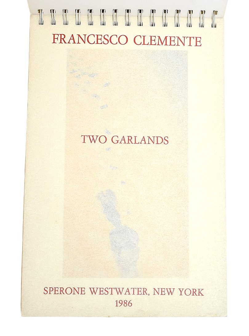 Clemente, Francesco: Two Garlands, Sperone Westwater, 1986. Legatura a spirale con piatti in cartonato illustrato. Prima edizione.