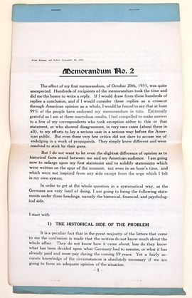 Documenti segreti propaganda nazista "Memorandum No. 2". in inglese (25 novembre 1931)