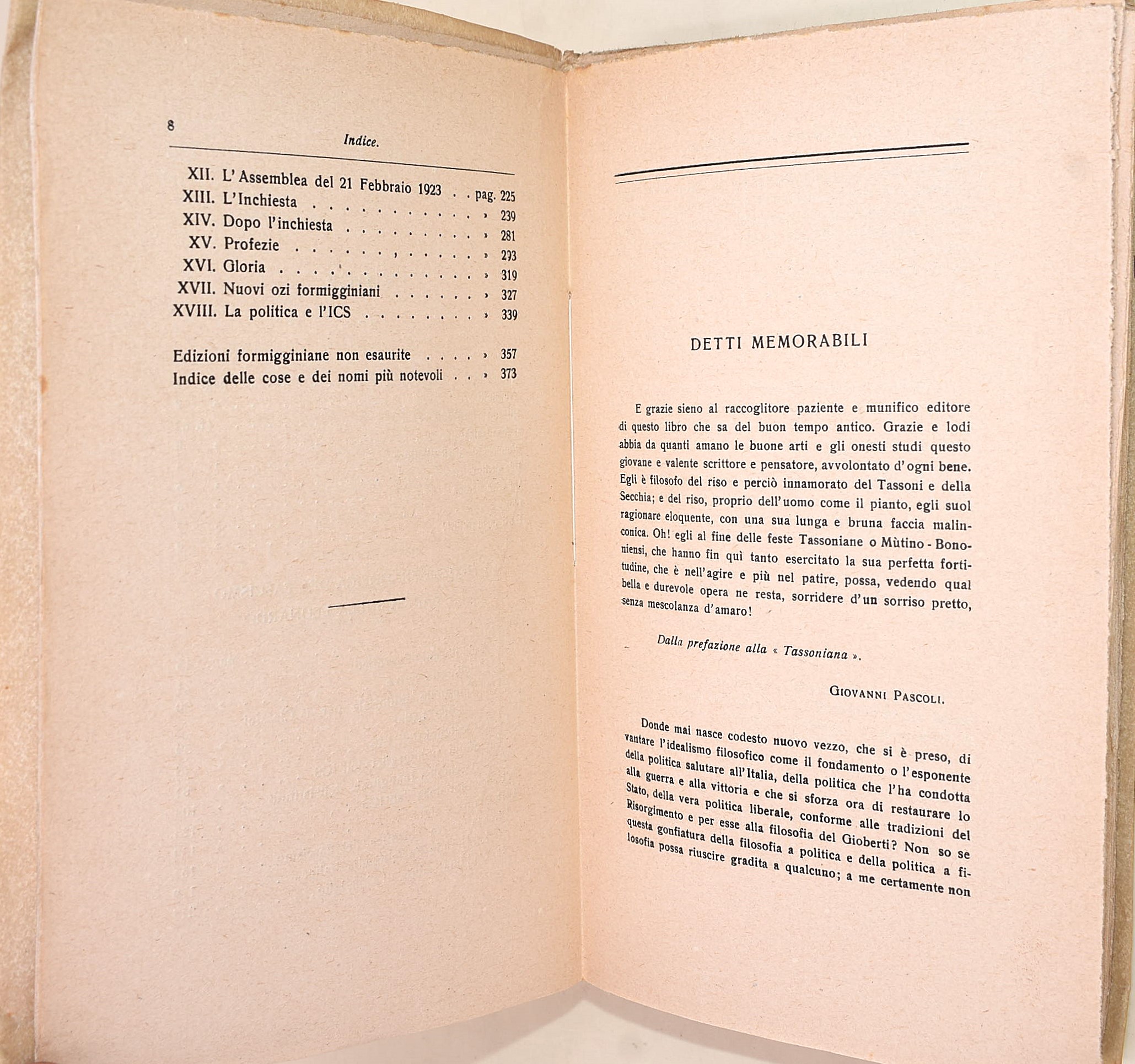 Formiggini: La ficozza Filosofica del Fascismo (1923) + lettere all'O.V.R.A.