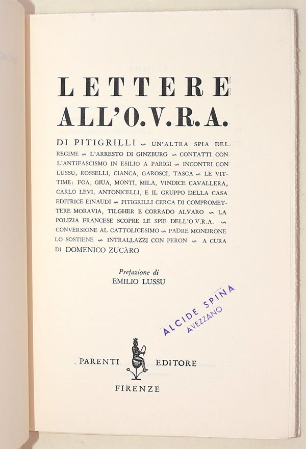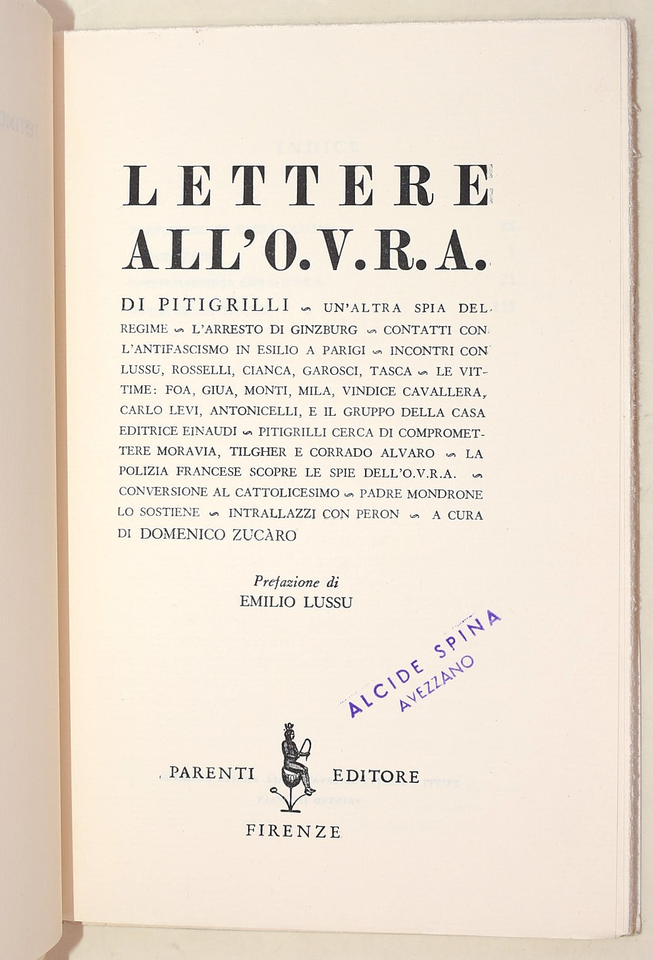 Lettere all'O.V.R.A. Prefazione di Emilio Lussu, Parenti, 1961.