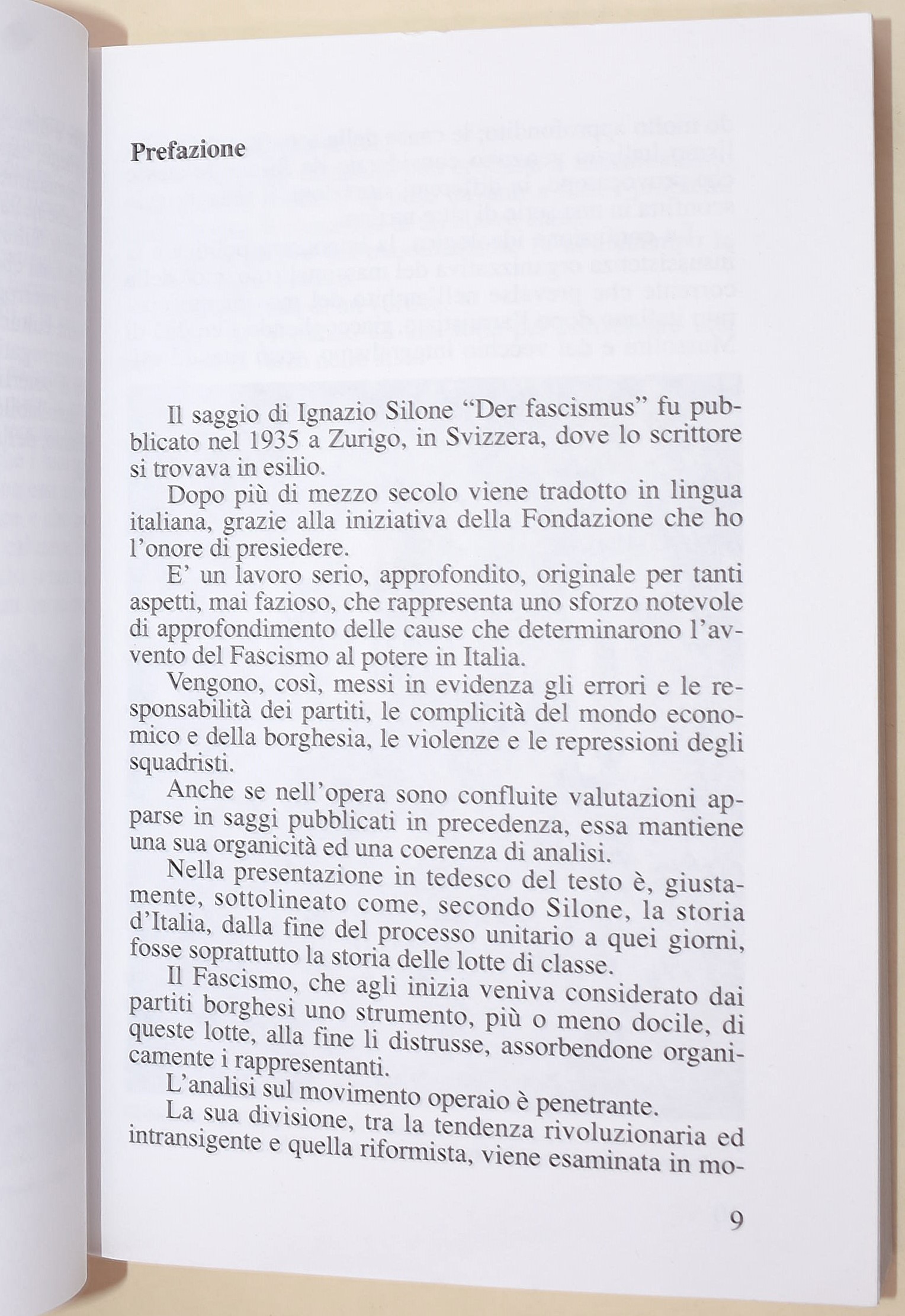 Silone, Ignazio: Il Fascismo: origini e sviluppo, Fondazione Ignazio Silone, 1991. Brossura.