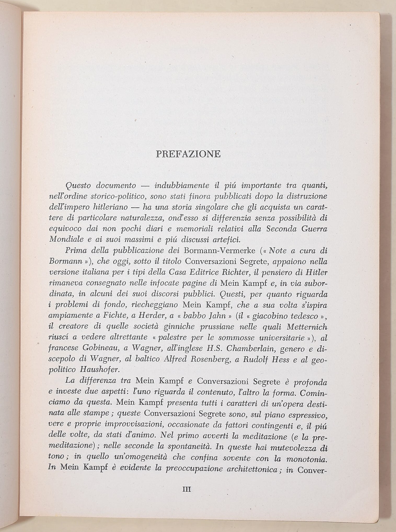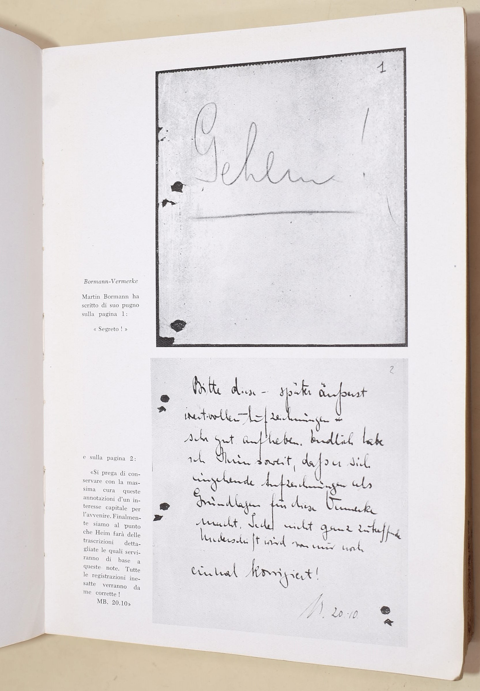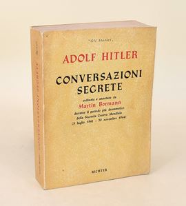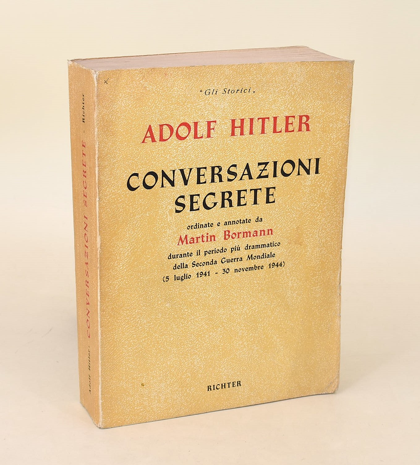Hitler, Adolf: Conversazioni segrete, ordinate e annotate da Martin Bormann. Durante il periodo piรน drammatico della Seconda Guerra Mondiale (5 luglio 1941 - 30 novembre 1944), Richter, 1954. Brossura.
