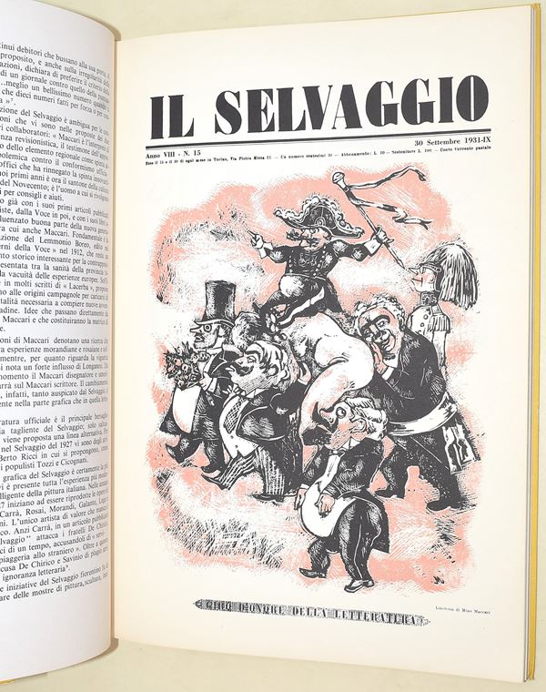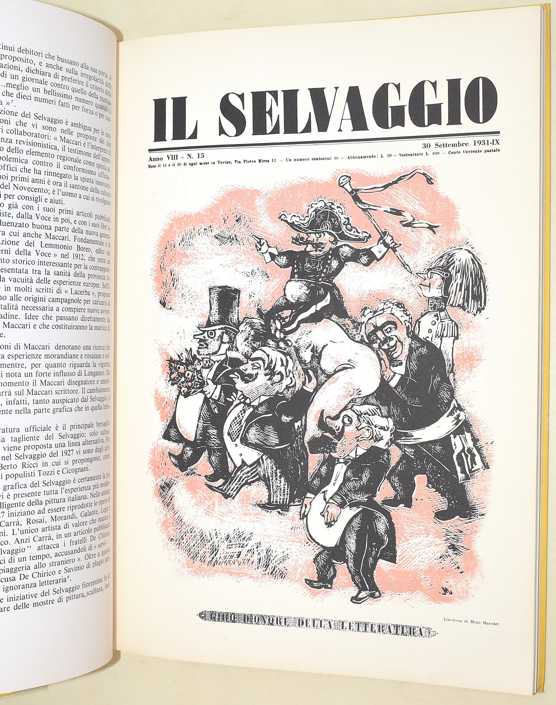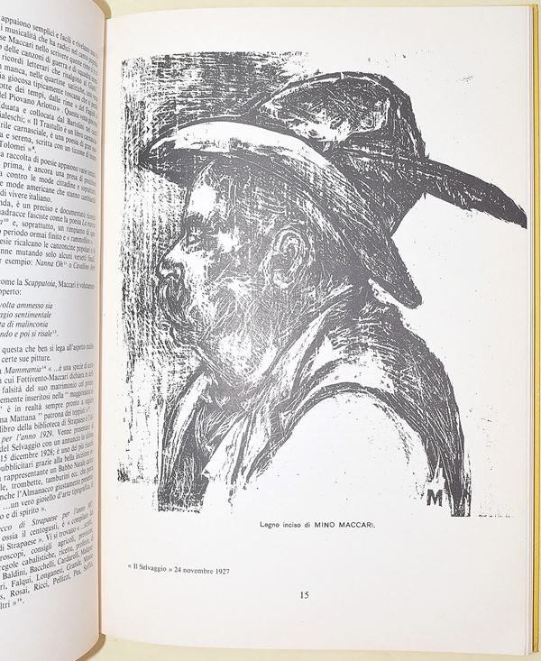 Catalogo pubblicato in occasione della grande retrospettiva dedicata a Mino Maccari presso il Palazzo Pubblico di Siena nel 1977. L’opera documenta in modo ampio la produzione grafica e pittorica dell’artista: dipinti, incisioni, illustrazioni, sperimentazioni e materiali d’archivio che attraversano le diverse fasi della sua attività.