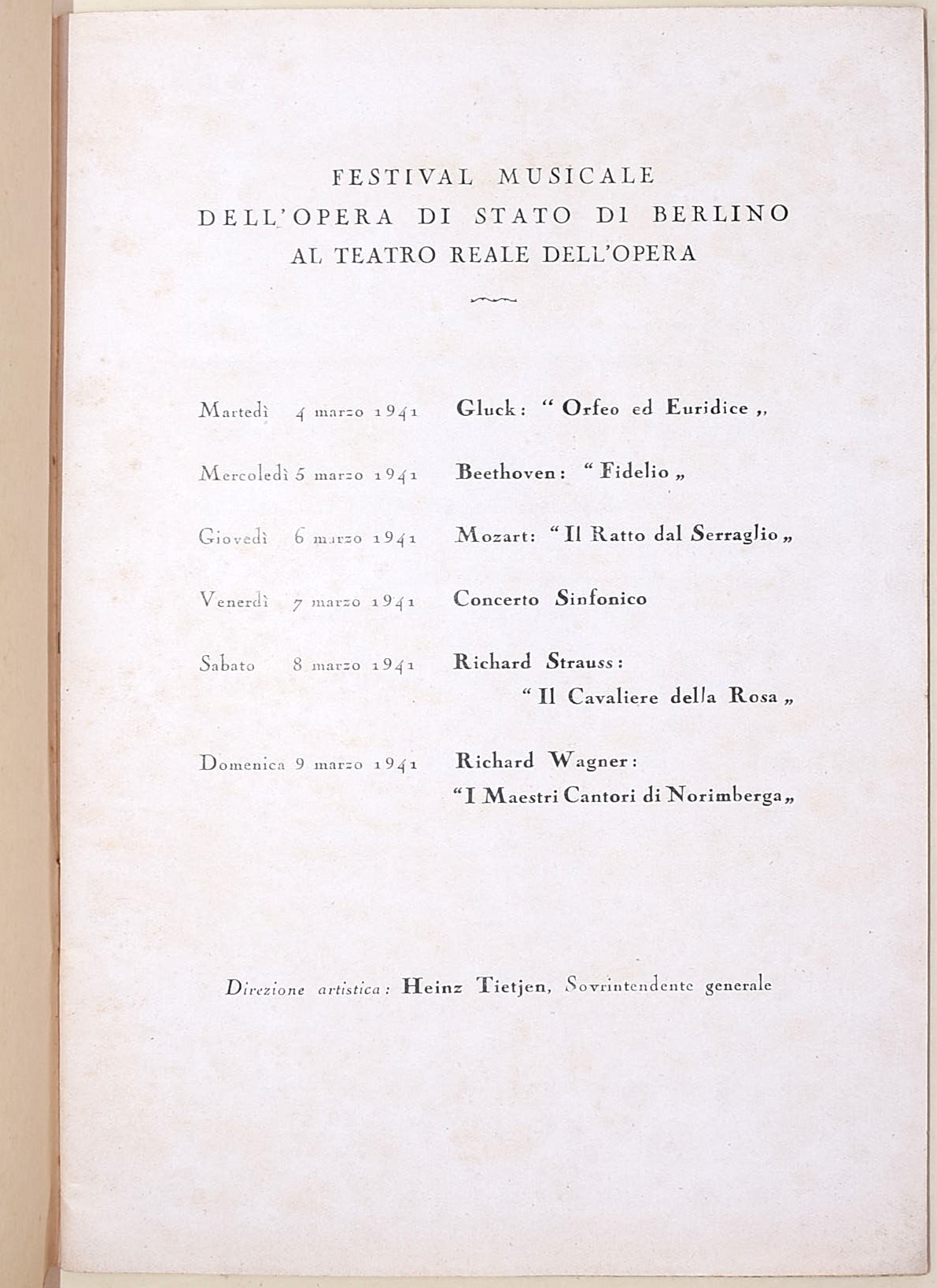 Festival Musicale dell'opera di Stato di Berlino al Teatro Reale dell'Opera, Roma, IV-IX marzo MCMXLI - XIX. Opuscolo.