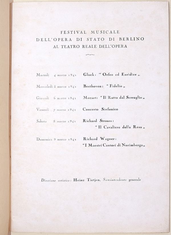 Programma del Festival Musicale dell'opera di Stato di Berlino al Teatro Reale dell'Opera 1941