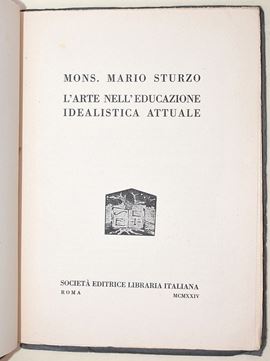 Sturzo, mons. Mario: L'arte nell'educazione idealistica attuale, Società Editrice libraria Italiana, 1924. Opuscolo.