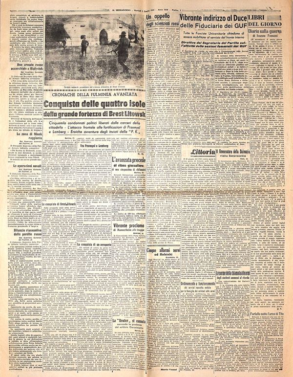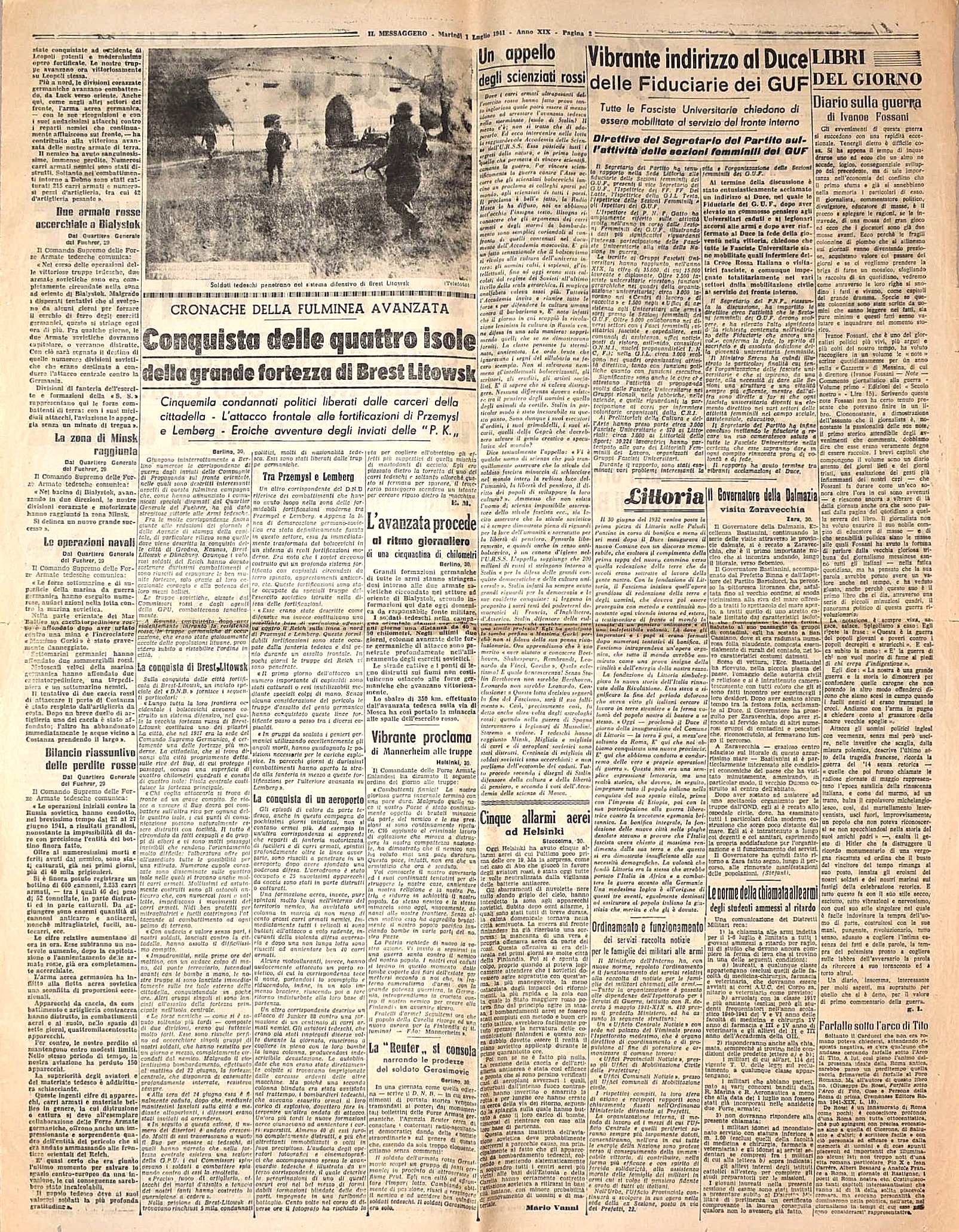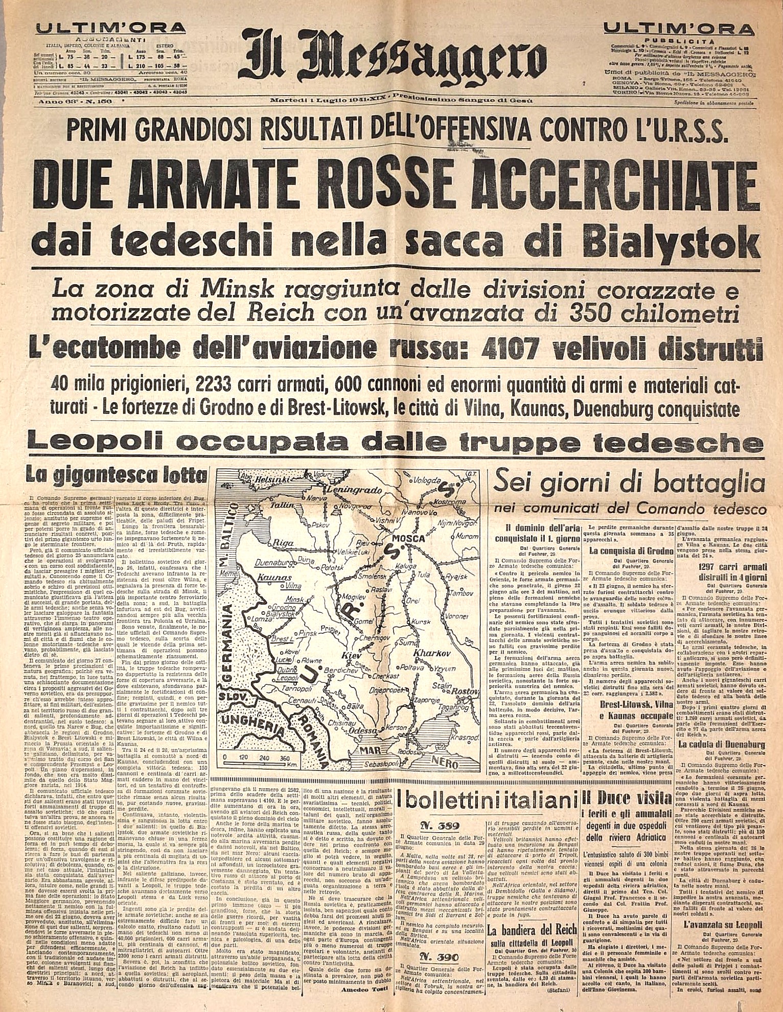 (W. W. II) Il Messaggero 1 luglio 1941 - "Due armate rosse accerchiate"