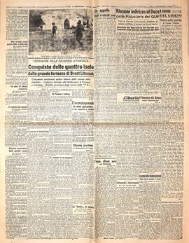 Rarissimo numero stampato durante la Guerra con notizie belliche. Prima pagina del Messaggero. Un foglio con 2 facciate. Formato quotidiano.