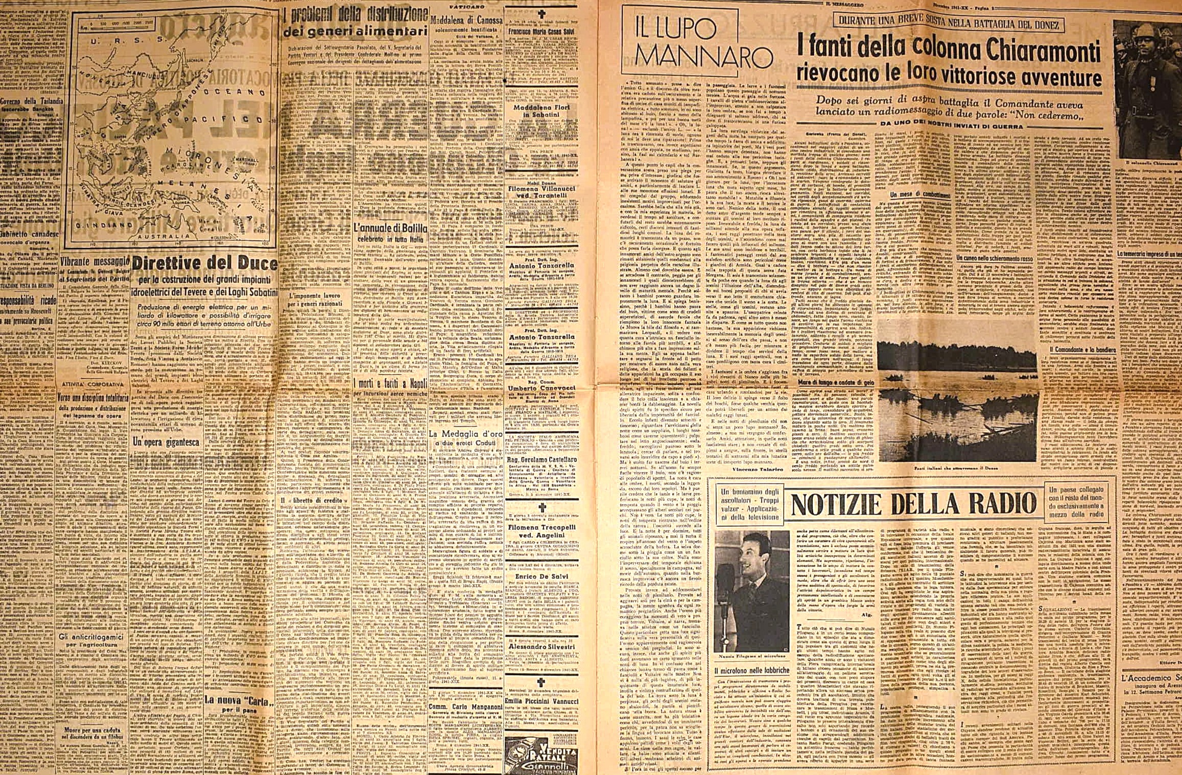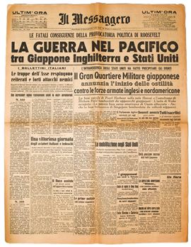 Il Messaggero 9 dicembre 1941 - "La Guerra nel Pacifico tra Giappone Inghilterra e Stati Uniti". Quotidiano originale di 6 pagine con una pagina di inserto sull'Abruzzo. Formato Quotidiano.