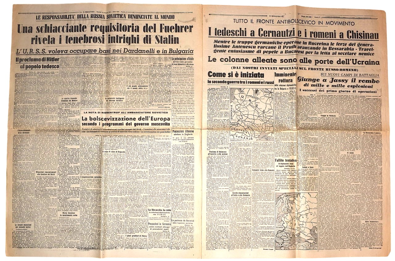 W. W. II Il Messaggero del 24 giugno 1941 - "Guerra alla Russia Sovietica"