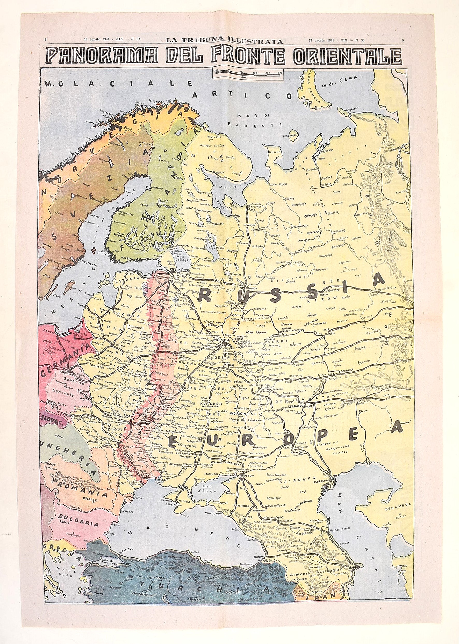 W. W. II Mappa a colori da "La Tribuna Illustrata" (1941)