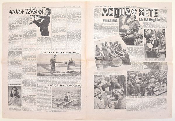 Poster con mappa a colori da "La Tribuna Illustrata" 17 agosto 1941 - XIX - N. 33 intitolata "Panorama del Fronte Occidentale". Dimensioni: 57x39 cm ca. Originale del 1941, ottimo stato di conservazione, ripiegata in 4. Articoli in bianco e nero sul retro.