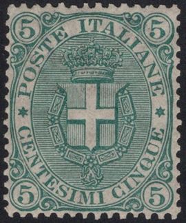 1891 - Stemma 5 cent. ben centrato.
