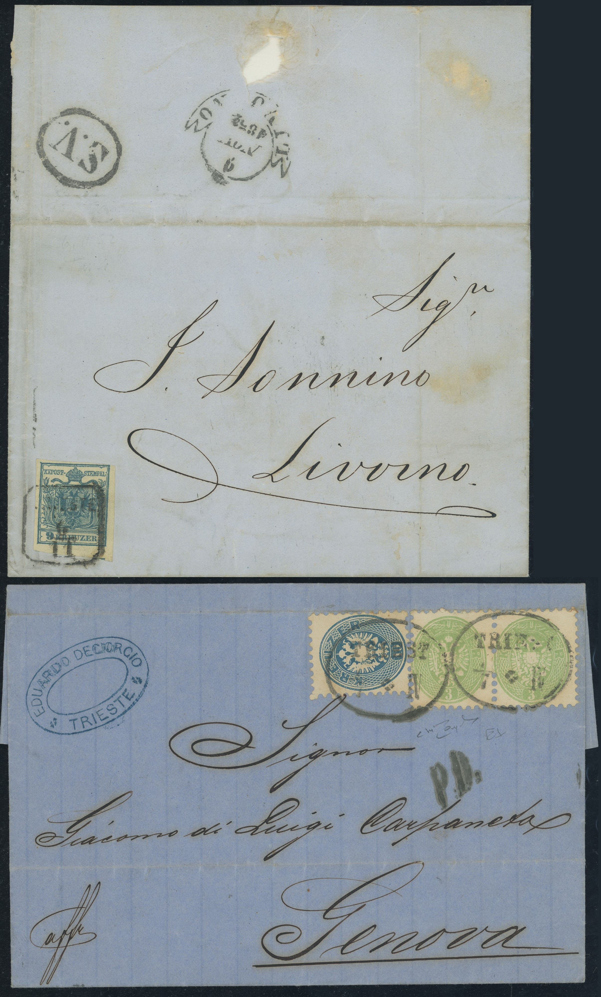 1850 - Due interessanti lettere della I e della V emissione. (A+)